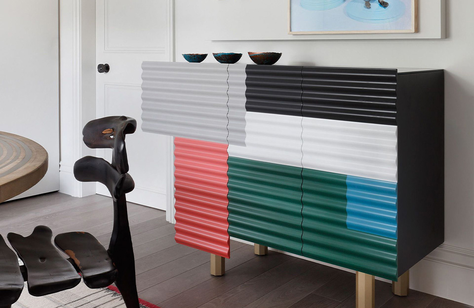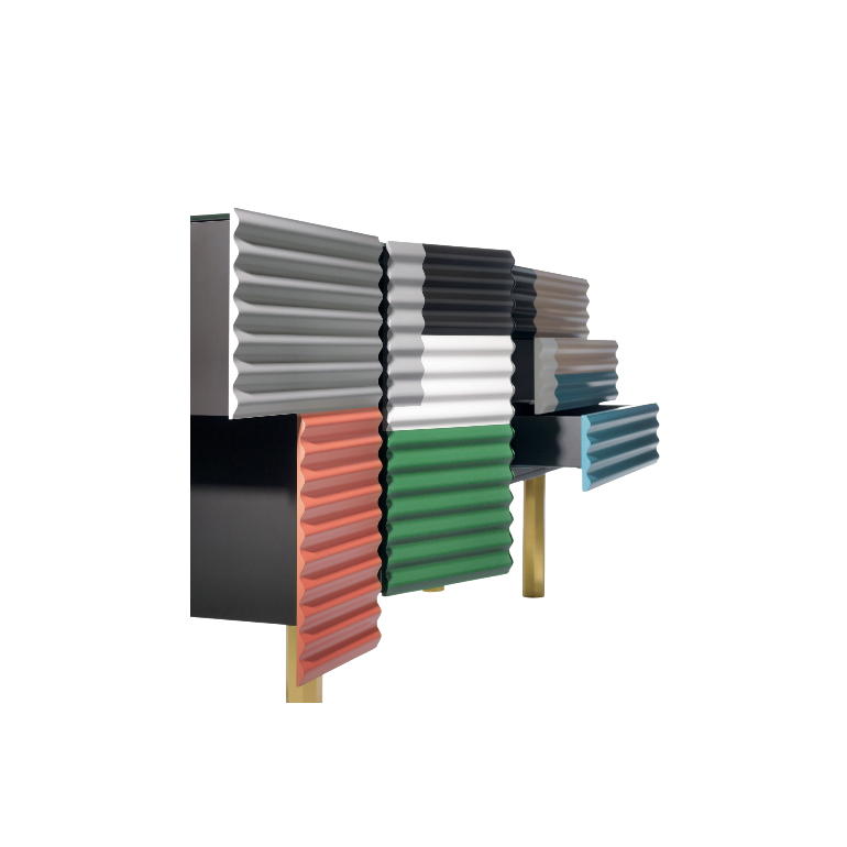 它的美麗在于不完美。這種不同顏色疊加表面的自發(fā)組合以波浪形的正面重新創(chuàng)建。它的身體體積不對稱,每扇門的打開方式都不同。