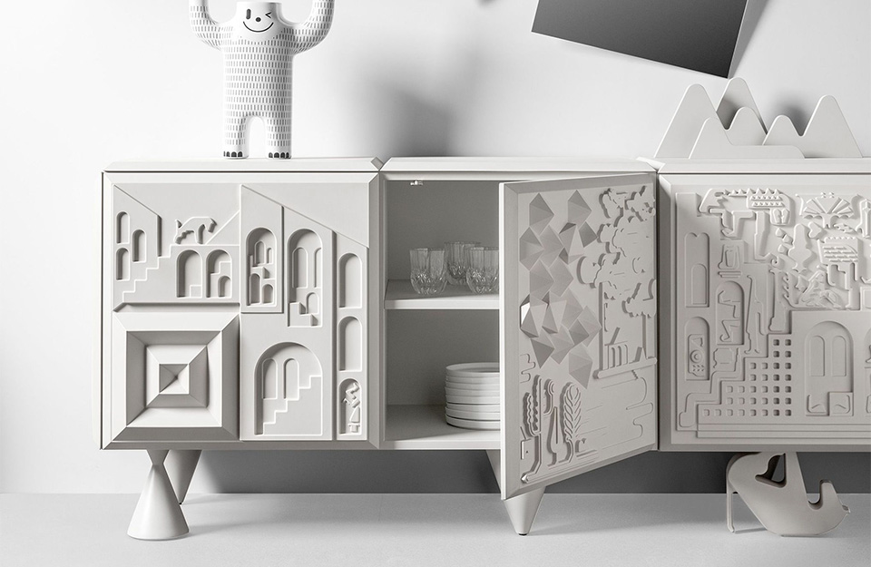 這個櫥柜由Antoine和Manuel為BD設(shè)計,令人驚訝地融合了應(yīng)用藝術(shù)、象形文字、當代圖形、幻想和樂觀主義。