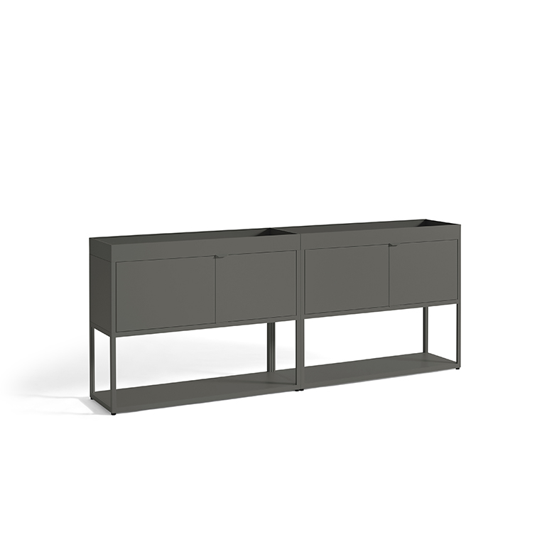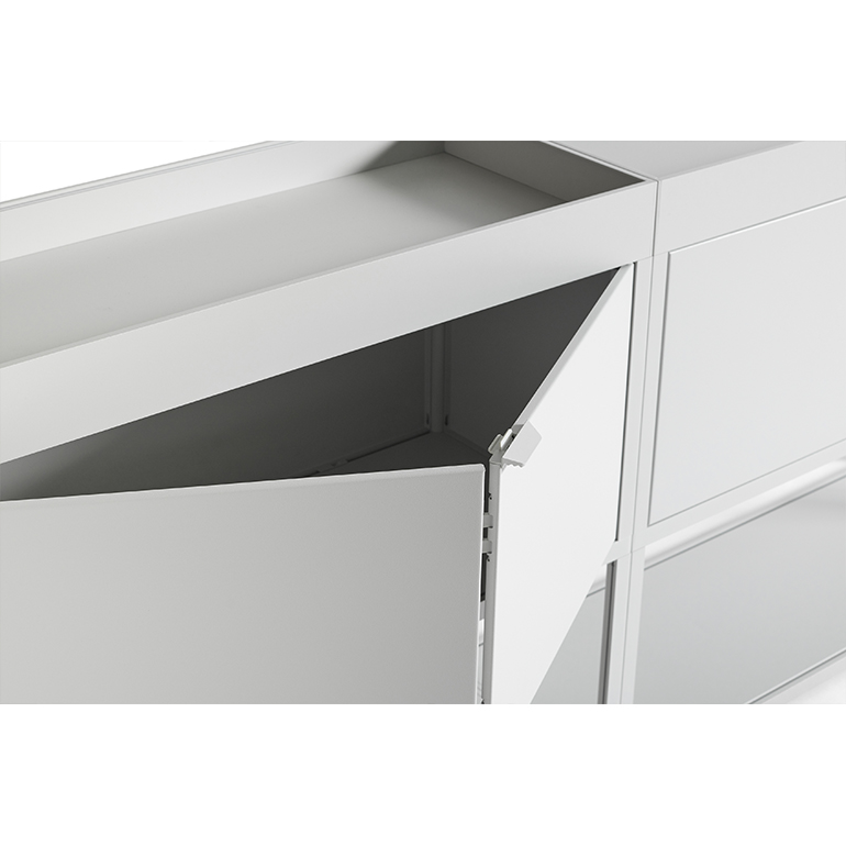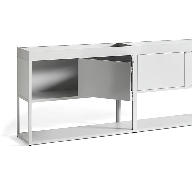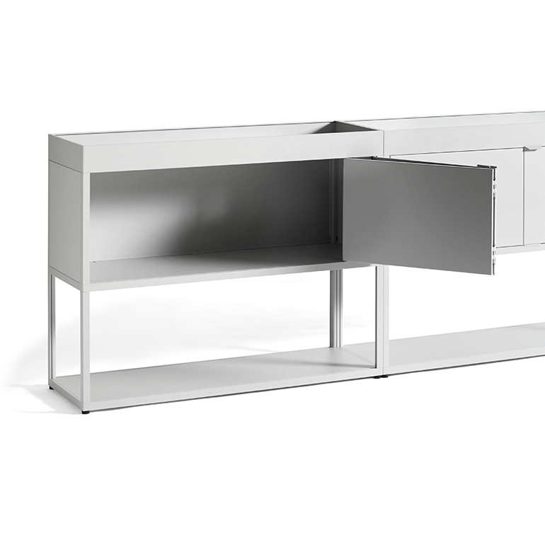 新訂單組合203包括一個開放的架子,封閉的櫥柜和上層托盤,滿足廣泛的組織和存儲需求。關(guān)閉的門有效地隱藏內(nèi)容,而開放的頂部托盤安全地包含各種小或大的對象。鋁格柵有不同的顏色選擇,可以添加面板、門和抽屜來定制外觀和功能,創(chuàng)造無限的組合和應(yīng)用。