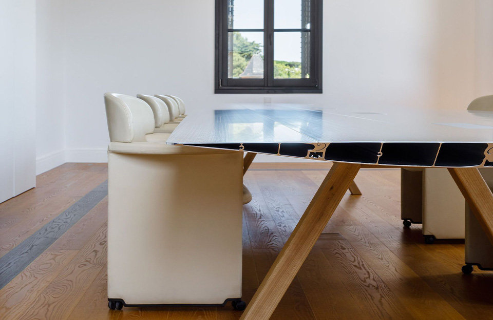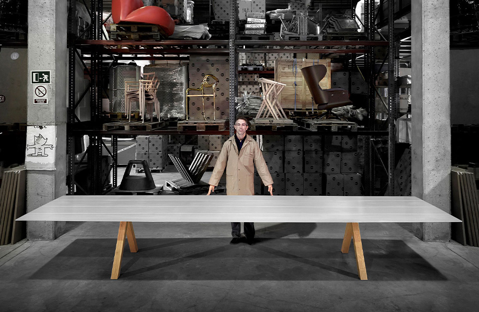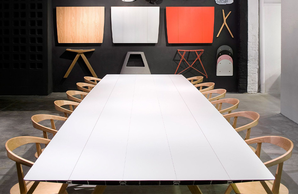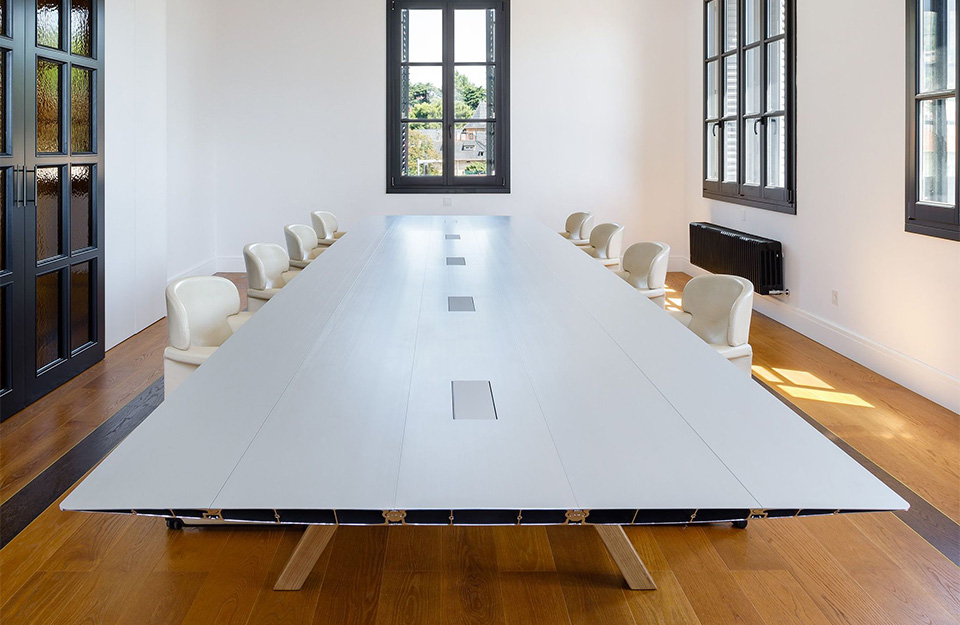 現(xiàn)在,這個(gè)家庭成長(zhǎng)為大桌子B,概念相同,設(shè)計(jì)相同,但頂部更寬,150厘米。有各種飾面可供選擇,銀色陽(yáng)極氧化鋁;或用硅橡木或顏色層壓。其明顯的簡(jiǎn)單性掩蓋了高級(jí)工程師參與的復(fù)雜技術(shù)發(fā)展。相反,生產(chǎn)還包括幾個(gè)手動(dòng)流程。結(jié)果是一件精心制作的作品,具有德國(guó)設(shè)計(jì)師的所有特征。