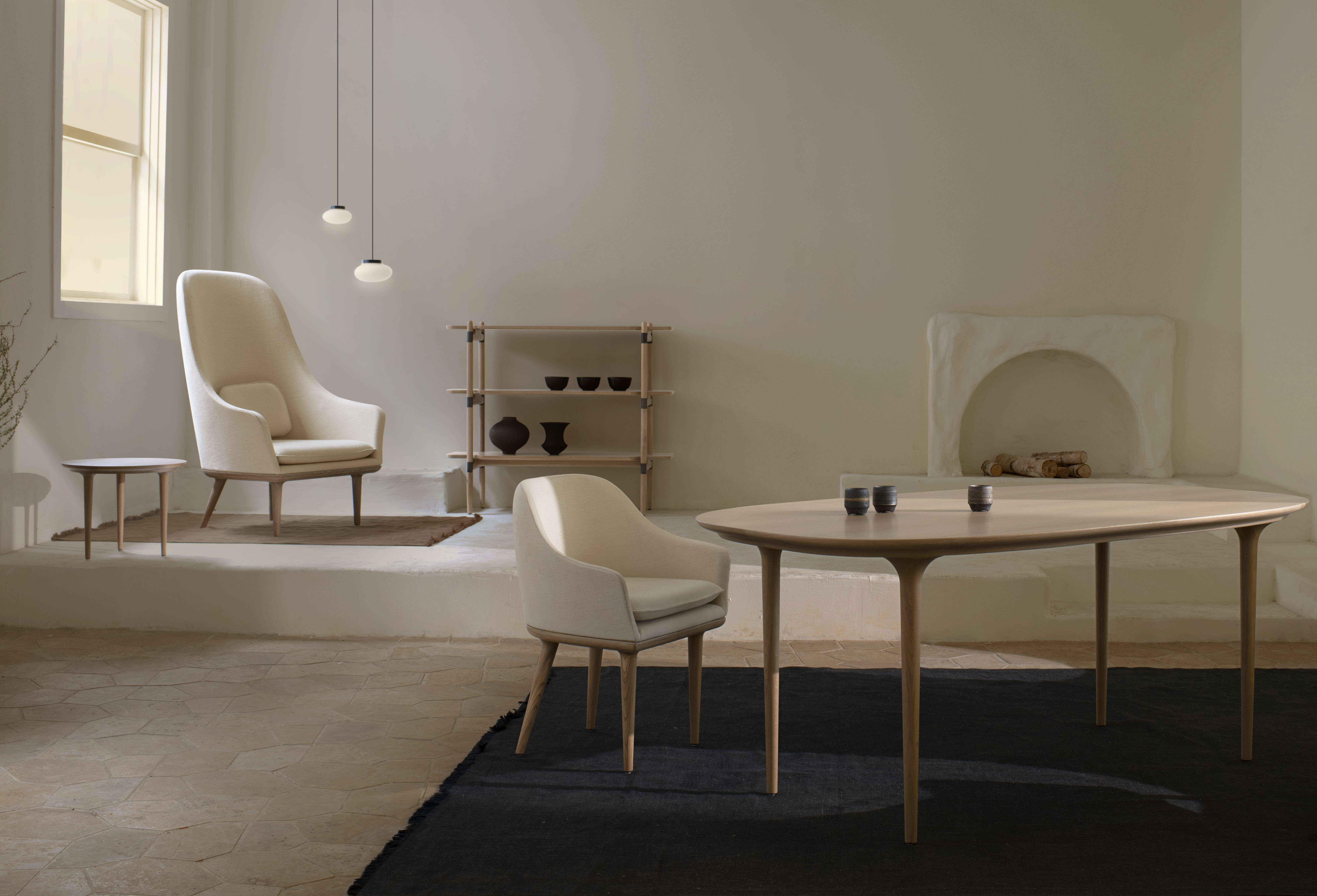 該系列受到他們?yōu)楦绫竟?108 餐廳設(shè)計的椅子的啟發(fā),由精美的軟墊木制家具組成,探索了狹窄輪廓之美。所有產(chǎn)品均具有可提升和支撐的窄腿,在中世紀丹麥和經(jīng)典日本設(shè)計之間實現(xiàn)了完美平衡。該系列是對傳統(tǒng)和工藝的致敬,體現(xiàn)在永恒、流暢的設(shè)計中,同時保持現(xiàn)代和舒適。該系列代表了優(yōu)質(zhì)工藝和材料。家具采用優(yōu)質(zhì)胡桃木和白蠟?zāi)局瞥?,座椅采用厚皮革,以最大限度地提高舒適度。裝飾保持在最低限度,以增強細節(jié)和形狀的感覺。