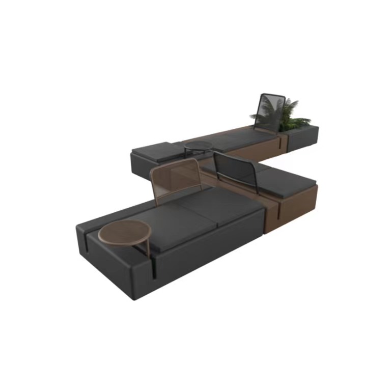 凱斯,設(shè)計(jì)者加布里埃萊 + 奧斯卡·布拉蒂為馮多姆,是一個(gè)戶外家具系列,配有一張組合沙發(fā)和一把兩個(gè)版本的椅子。