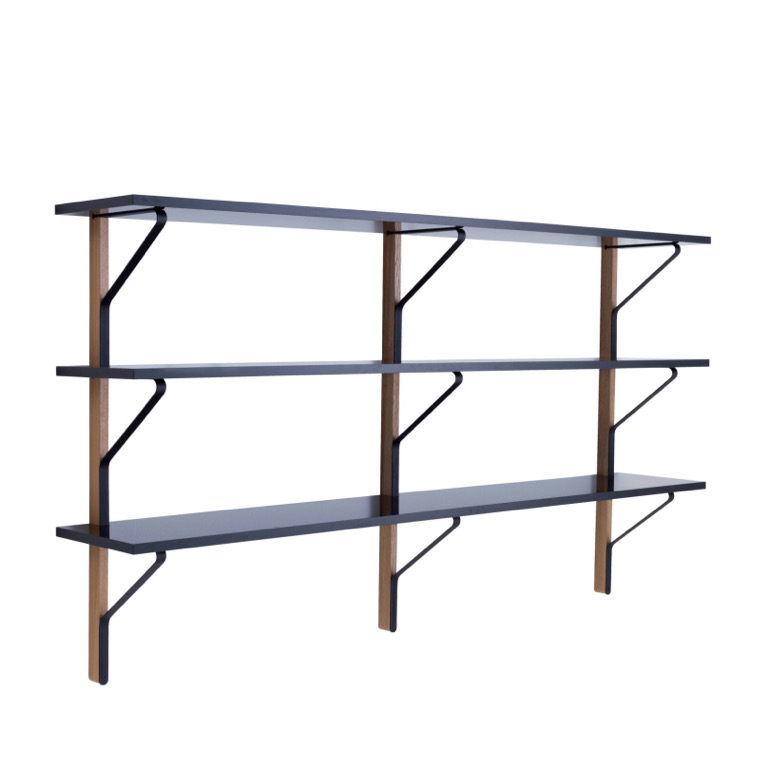 這個(gè)架子單元結(jié)合了天然實(shí)心橡木壁支架和Kaari系列特有的簡(jiǎn)單彎曲鋼帶。光滑的架子和鋼帶之間的相互作用創(chuàng)造了獨(dú)特的流體輪廓,而寬度為存儲(chǔ)和展示提供了寬敞的空間。