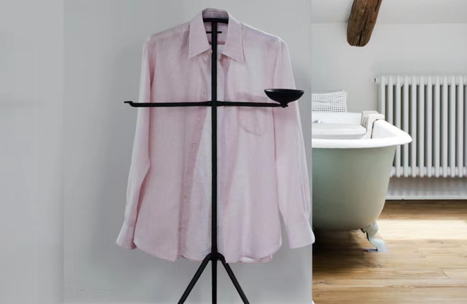 材料:鍛鐵框架,涂有聚酯粉末。橡膠衣架和托盤。