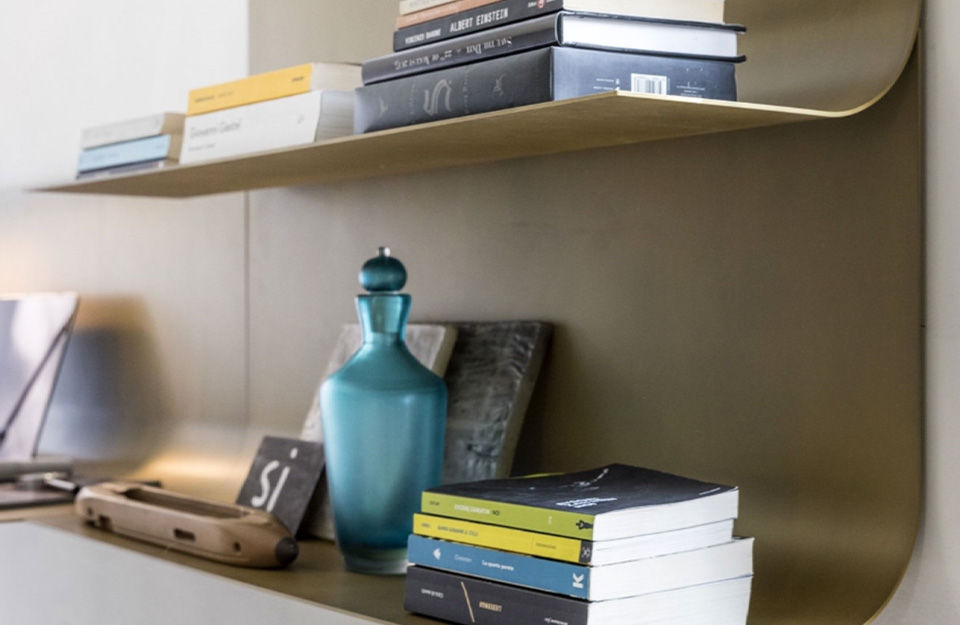 Sfoglia是一個架子,也是一張金屬書桌。有拋光和古銅飾面可供選擇。像書頁一樣透過墻壁的薄箔。結(jié)果是一個非常簡單的元素形式,但用途非常廣泛。只有一個模塊也可以倒置安裝,您可以擁有許多組合。需要墻壁安裝。