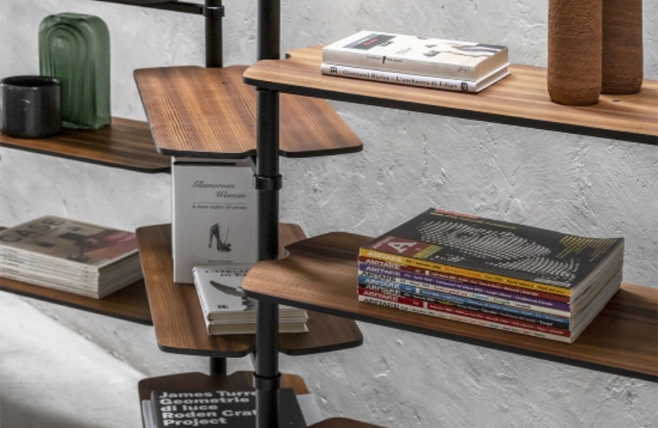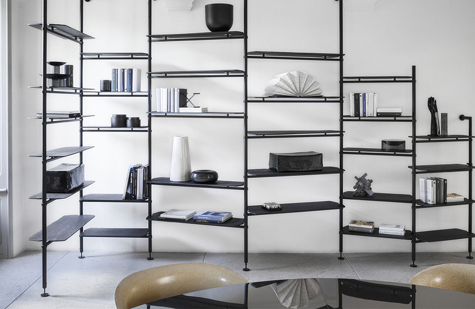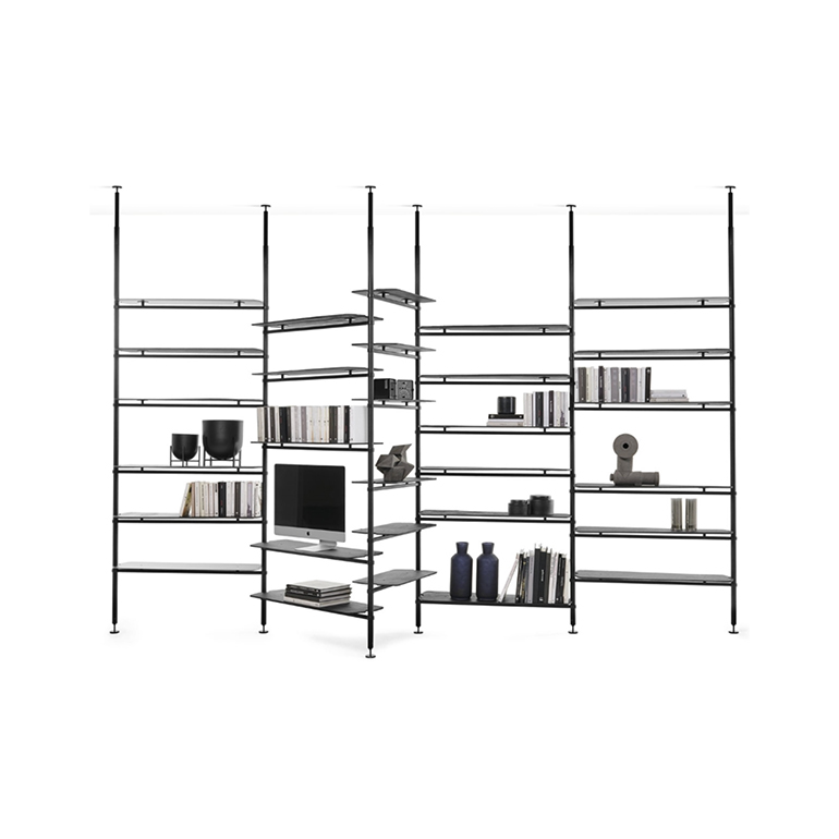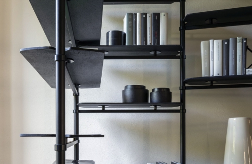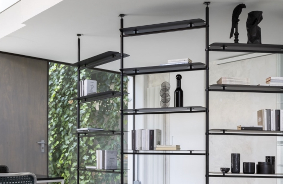 Levante是一個(gè)啞光黑色金屬的模塊化書柜,有天花板或墻壁固定。貨架有飾面可供選擇:石板、熱處理落葉松、啞光黑色金屬。這是一個(gè)非常通用的書柜,允許為房子的各個(gè)房間進(jìn)行多種配置,從起居區(qū)到家庭辦公室。