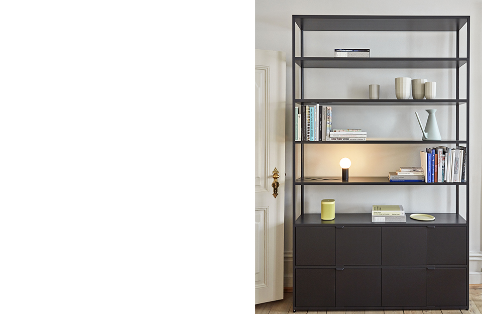 New Order Combination 702包括開放貨架和封閉存儲(chǔ)空間的靈活組合,模塊化系統(tǒng)提供了功能和美學(xué)的存儲(chǔ)解決方案。整體滑動(dòng)門由粉末涂層鋼制成,可以指定匹配網(wǎng)格的顏色,創(chuàng)造一個(gè)無縫的,統(tǒng)一的外觀或定制與對(duì)比的顏色。該系統(tǒng)可以通過面板、門、托盤和抽屜進(jìn)行修改,以定制外觀和功能,創(chuàng)造無限的組合和應(yīng)用。