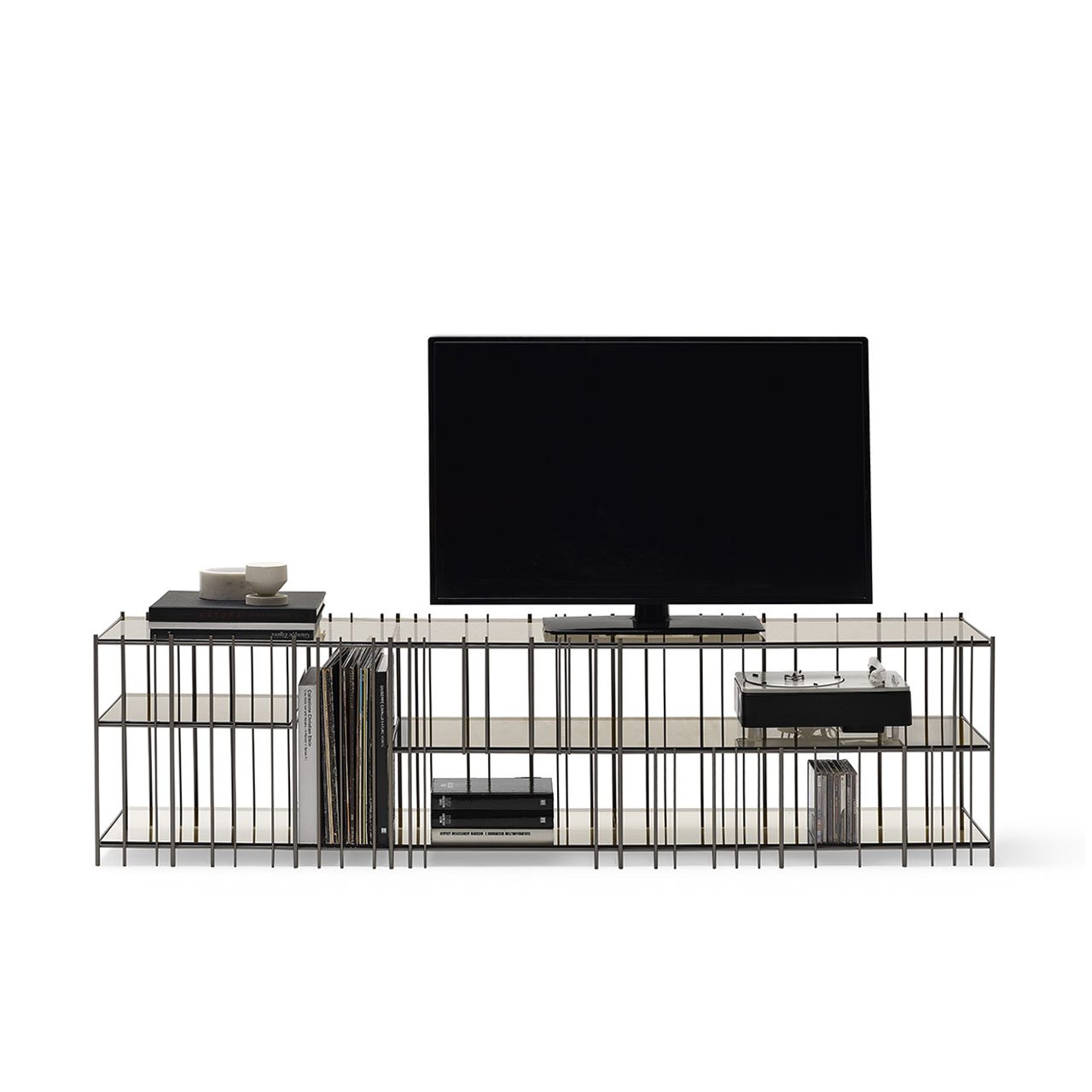 Metrica TV 金屬材質,結構簡單,其節(jié)奏由固定在不同間隔的鐵棒標記,鐵棒內的物體通過不時書寫新的構圖來完成形狀。