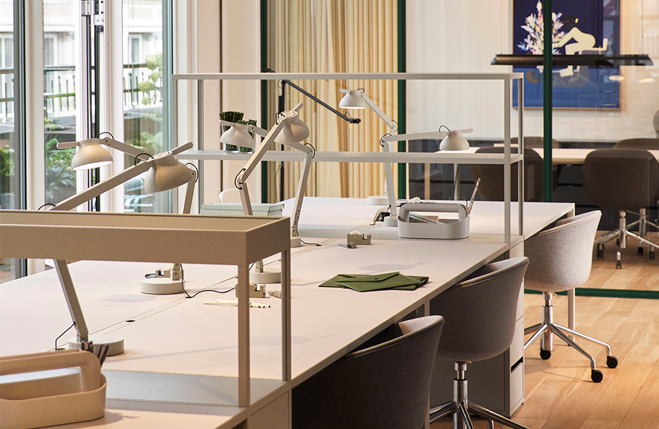 Pierre Charpin 的 PC 燈系列是一系列精致和精確設(shè)計的多功能工作燈,可以多種方式使用 - 獨立式、桌面式、夾式和壁掛式。該燈采用功能強大的設(shè)計,采用聚碳酸酯燈頭、鋁制臂和 ABS 底座,帶有隱藏式氣彈簧,使臂和頭在任何移動時都能保持其位置。它還具有一個集成的觸摸調(diào)光開關(guān),可控制亮度水平。PC 雙臂燈具有雙擺臂,并提供夾子、壁掛支架、桌面底座和桌面插入變體。它既適用于私人環(huán)境,也適用于辦公室環(huán)境,并有資格作為工作燈使用。