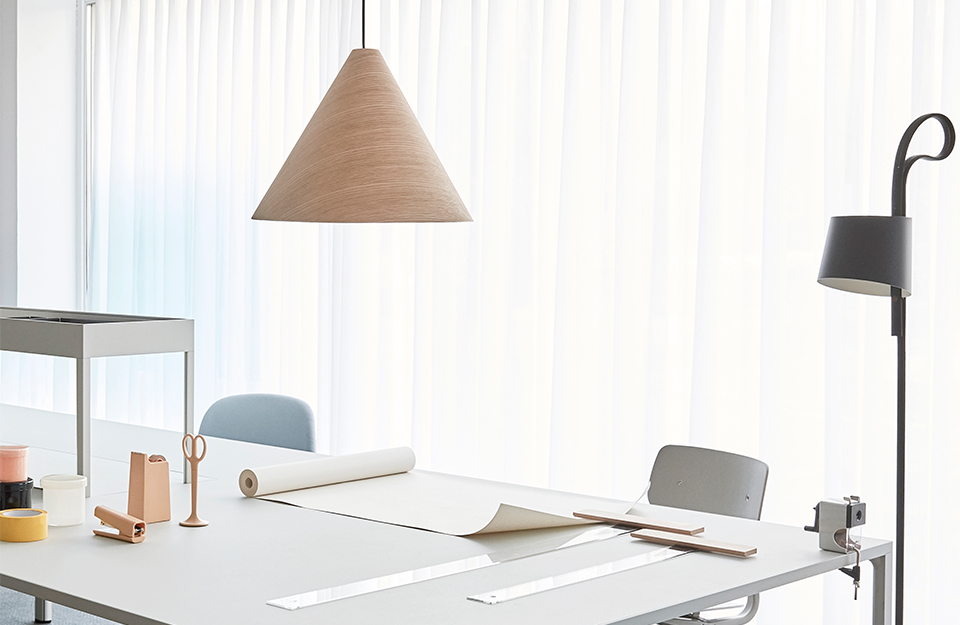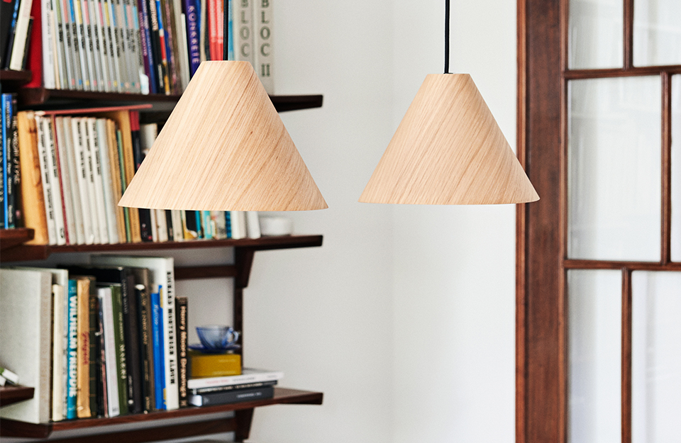 30 度是由層壓橡木貼面制成的輕質(zhì)燈罩。無縫表面是通過將半圓形單板的末端以 30 度角對齊來實現(xiàn)的,因此內(nèi)錐和內(nèi)角始終為 30 度。錐形單板的分層營造出不透明的純色陰影,并以其和諧的木紋圖案為特征。豐富的觸感,系列表達(dá)自然優(yōu)雅的美感。所有燈罩都用啞光漆密封,并配有模制定位器配件,在懸掛時可以平整和支撐燈罩。窗簾線組單獨出售。