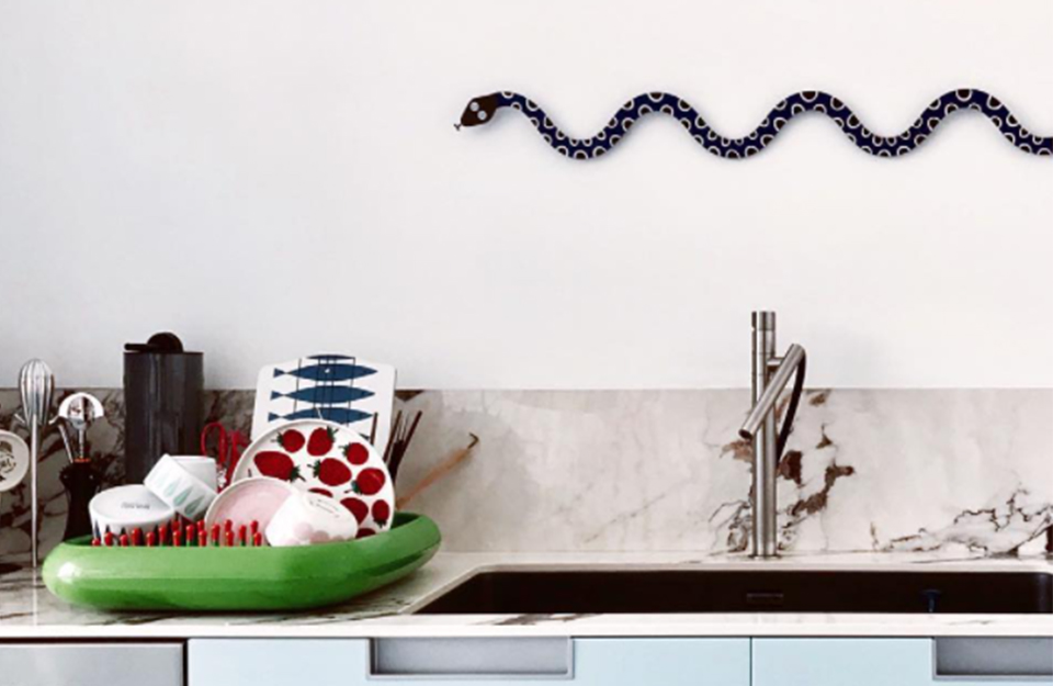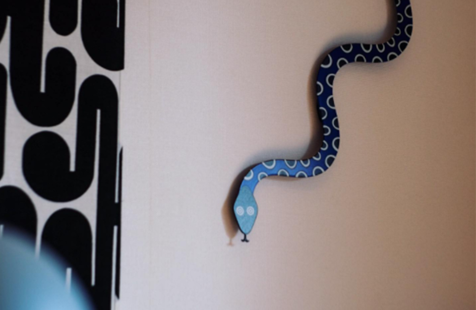 Alexander Girard 為他在德克薩斯州圣安東尼奧市舉辦的“HemisFair '68”國際博覽會上的民間藝術(shù)展覽設(shè)計了魔術(shù)蛇圖案。蛇作為裝飾元素出現(xiàn)在“人民的魔法”展館的立面上以及隨附的展覽目錄中。Metal Wall Relief Magic Snake 由堅固的金屬制成,并具有彩色粉末涂層表面。
