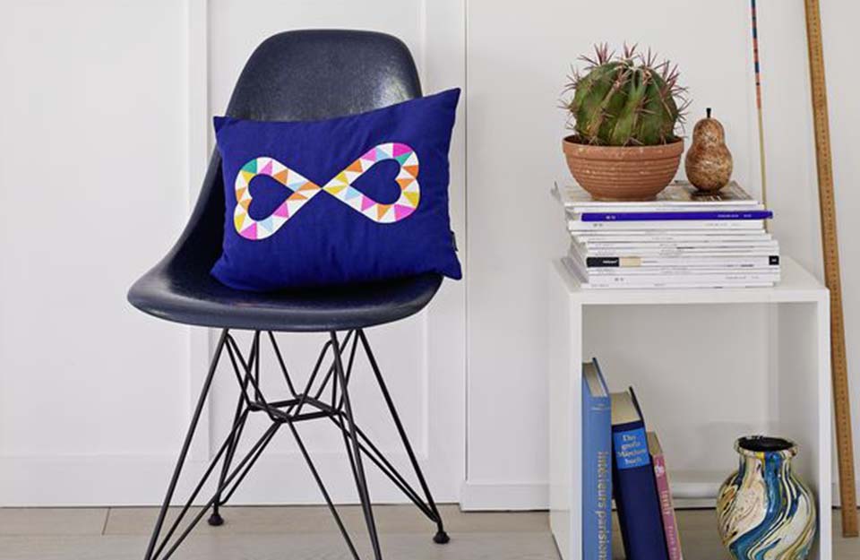 帶有“Double Heart 2”圖案的刺繡枕頭是 Alexander Girard 于 1975 年為米勒家族創(chuàng)作的——米勒之家竣工 20 年后。