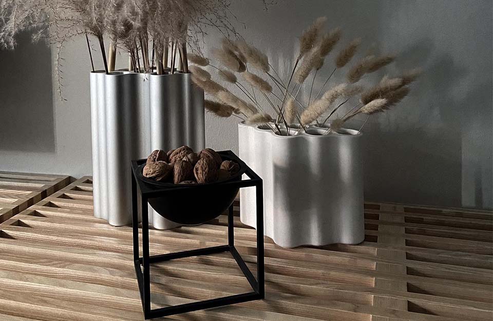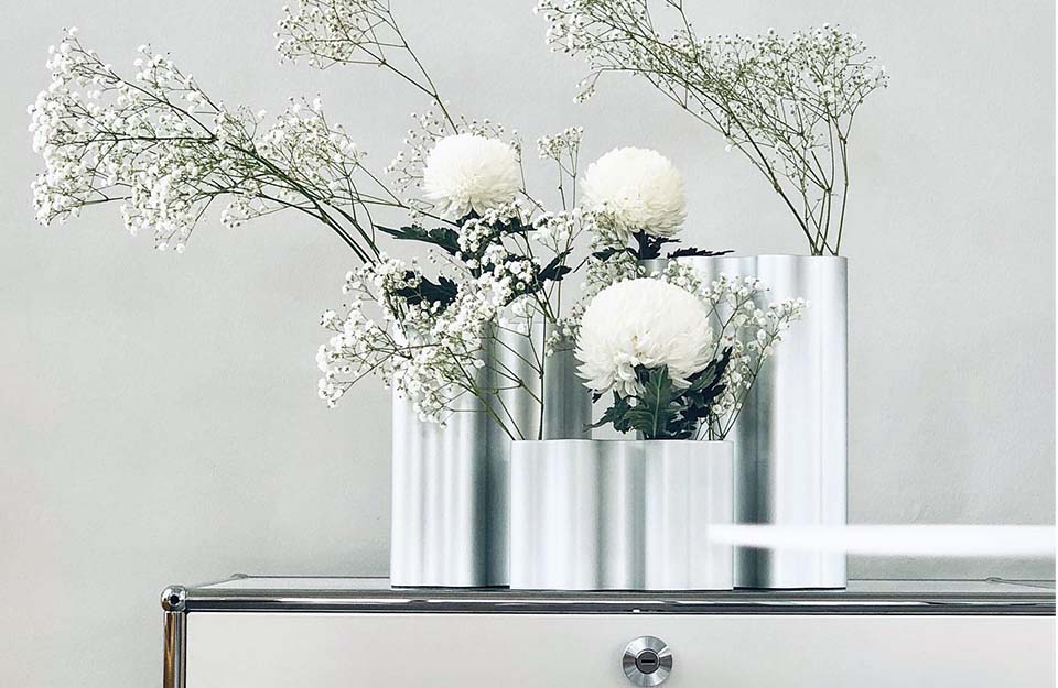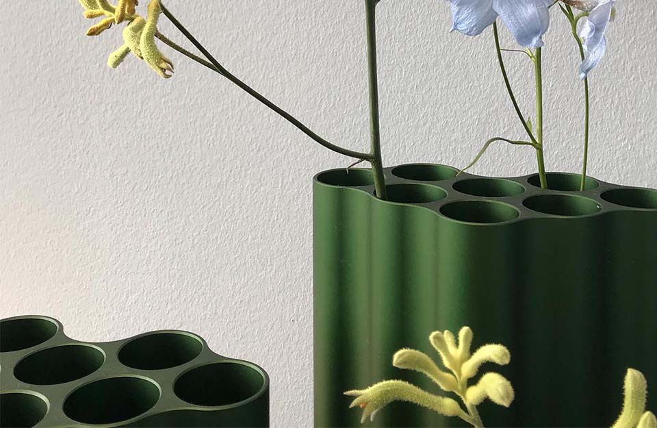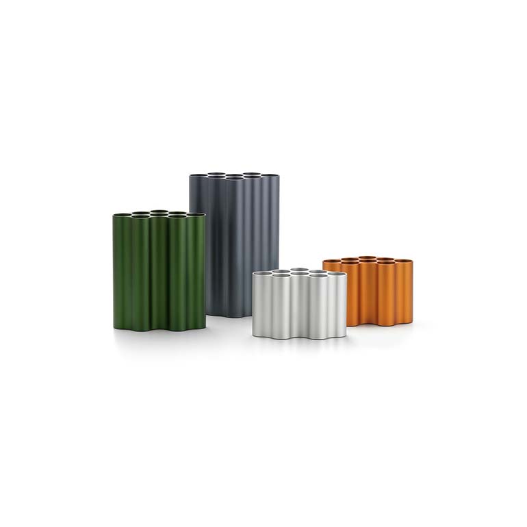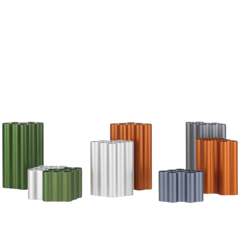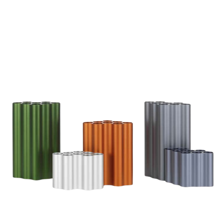 Nuage花瓶以其起伏的形狀和各種顏色的氧化鋁飾面產(chǎn)生了迷人的光影相互作用。花和草可以排列在每組八個(gè)獨(dú)立的管子中,由于它們精確的外部輪廓,花瓶也可以組合在一起形成整個(gè)“云層”。