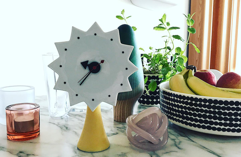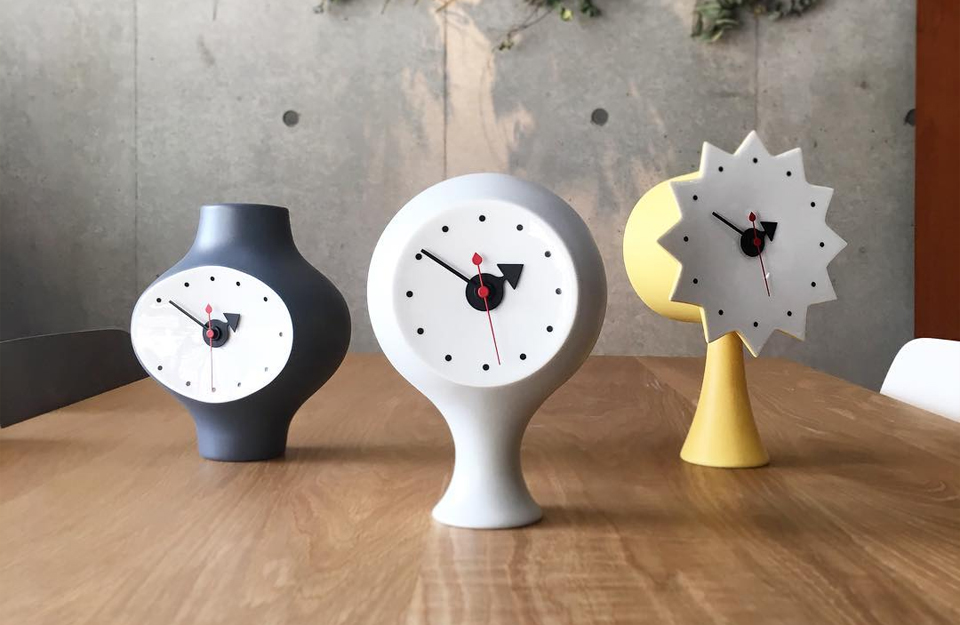 George Nelson 的陶瓷鐘將幾何形狀和有機(jī)形狀結(jié)合在一起,既有趣又充滿雕塑感,讓人聯(lián)想到康斯坦丁·布朗庫西(Constantin Brancusi)或野口勇(Isamu Noguchi)等藝術(shù)家的三維作品。