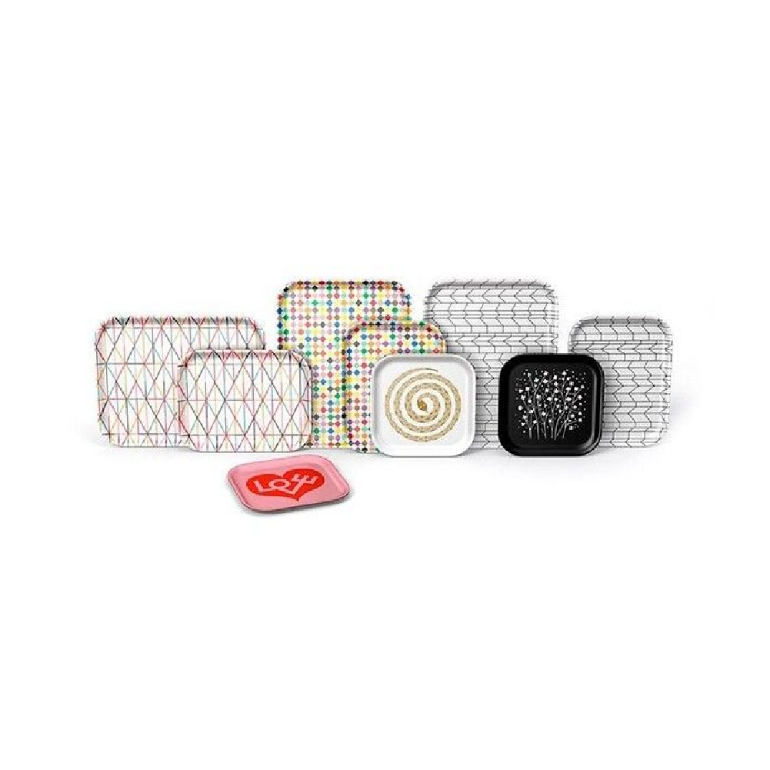 經(jīng)典托盤由層壓膠合板制成,有亞歷山大·吉拉德為各種目的創(chuàng)作的各種圖案,由維特拉與吉拉德家族合作挑選。圓點(diǎn)圖案由查爾斯和雷·埃姆斯于1947年設(shè)計(jì),后來用于枕頭、靠墊、毯子和其他物品。