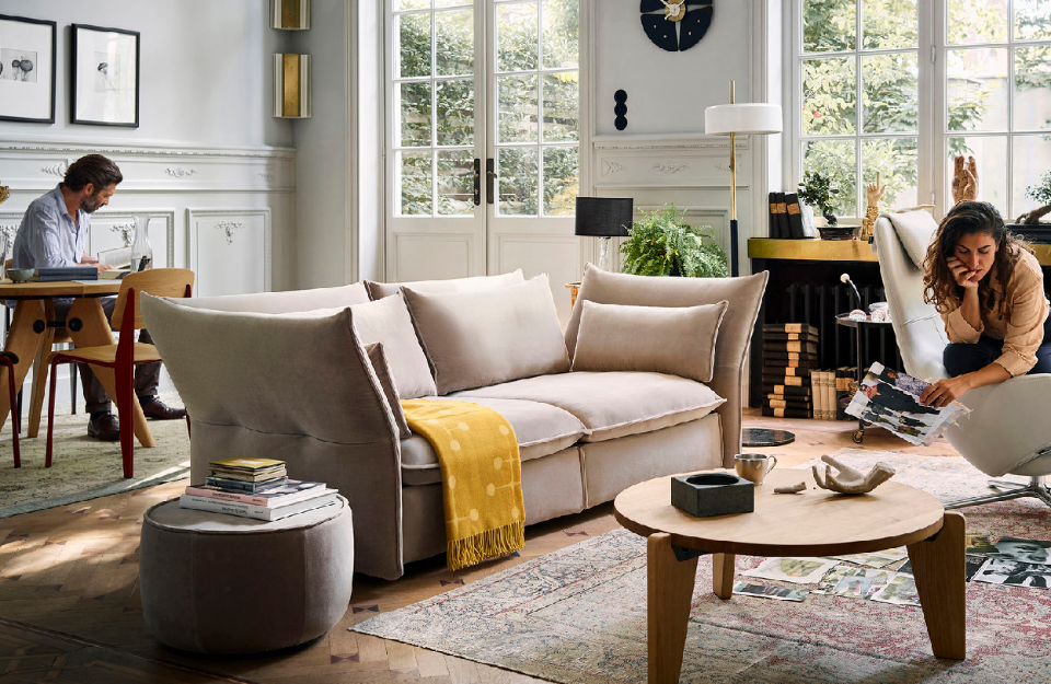 像許多其他二十世紀(jì)著名的建筑師和設(shè)計(jì)師一樣,查爾斯和雷·埃姆斯也試圖在紡織品設(shè)計(jì)中實(shí)現(xiàn)他們關(guān)于顏色、形狀和材料的想法。“圓點(diǎn)圖案”是1947年與紐約現(xiàn)代藝術(shù)博物館的一場(chǎng)展覽同時(shí)創(chuàng)作的。該圖案是由十字和圓點(diǎn)組成的大規(guī)模圖形構(gòu)圖,因此參考了雷·埃姆斯(Ray Eames)20世紀(jì)30年代的抽象畫。