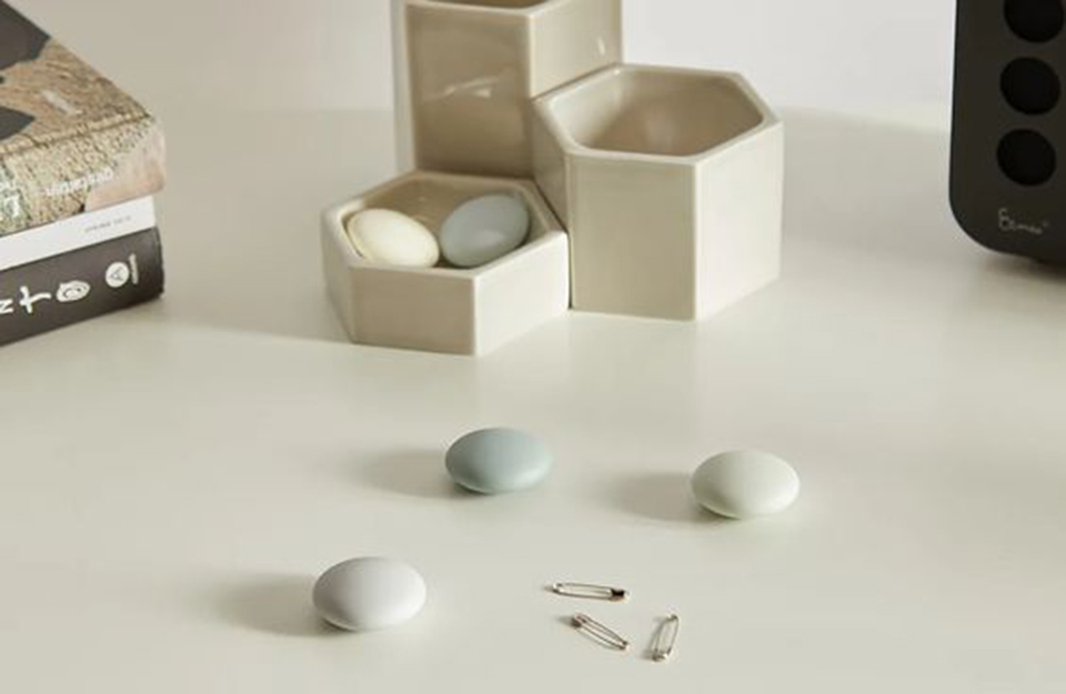 磁鐵點由于其有機形狀的輪廓,使人聯(lián)想到鵝卵石。強力磁鐵,堅固的塑料外殼,有四種不同的顏色,每一種包含五個磁鐵。