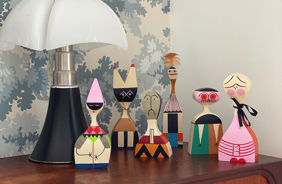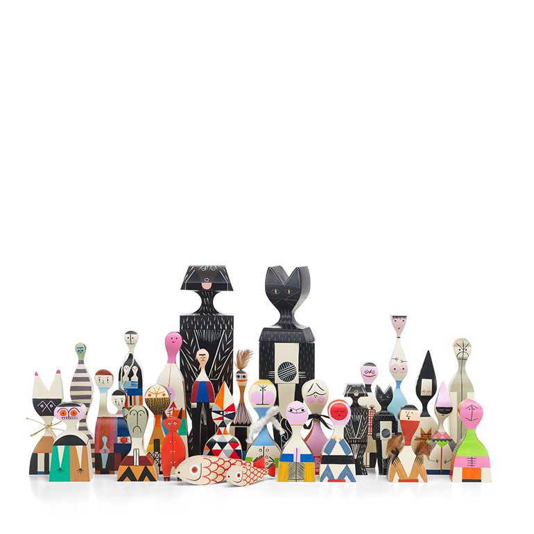 亞歷山大·吉拉德(Alexander Girard)最初為自己的家創(chuàng)作了木制玩偶(1952年),這是一種異想天開(kāi)的人物組合,既有快樂(lè)的,也有冷酷的。如今,它們?yōu)槿魏问覂?nèi)裝飾增添了迷人的色彩。