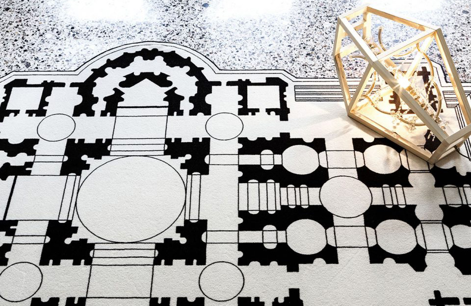 Pietro是由80%的羊毛和20%的聚酰胺制成的地毯,印有黑色和白色,邊緣齊平。清晰的靈感在于著名的圣彼得大教堂的平面圖,這是一座文藝復(fù)興晚期的教堂,位于梵蒂岡城。有兩種尺寸可供選擇。