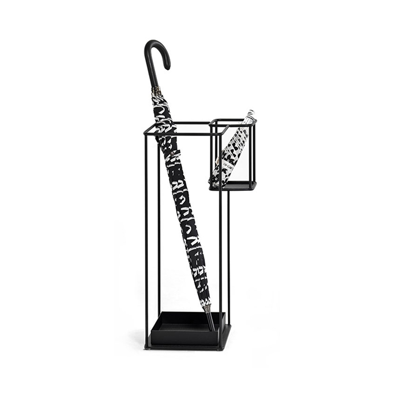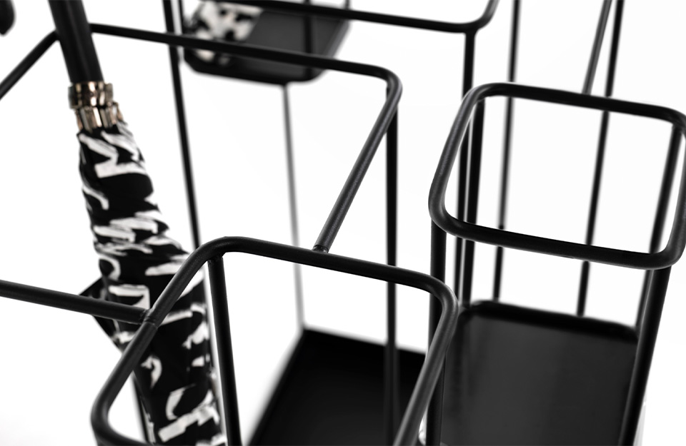 Duo是一個由黑色金屬制成的傘架。它是一個有用的配件,線條簡單,提供經(jīng)典和小型折疊傘的外殼。