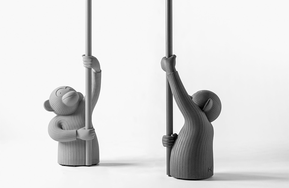 猴子系列現(xiàn)在增加了一個新的功能,提供微笑服務(wù)。桿子和香蕉形狀的鉤子,由木材制成,表面為灰色或黑色,與底座相匹配。衣架也可以分開獲得,直接掛在任何墻上。