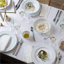 用 Banquet 系列現(xiàn)代時(shí)尚的餐具佈置餐桌。該套裝中的每件餐具都有其獨(dú)特的表達(dá)方式,由白色浮雕和金色細(xì)節(jié)中的線條和圓圈的精緻圖案打造而成。