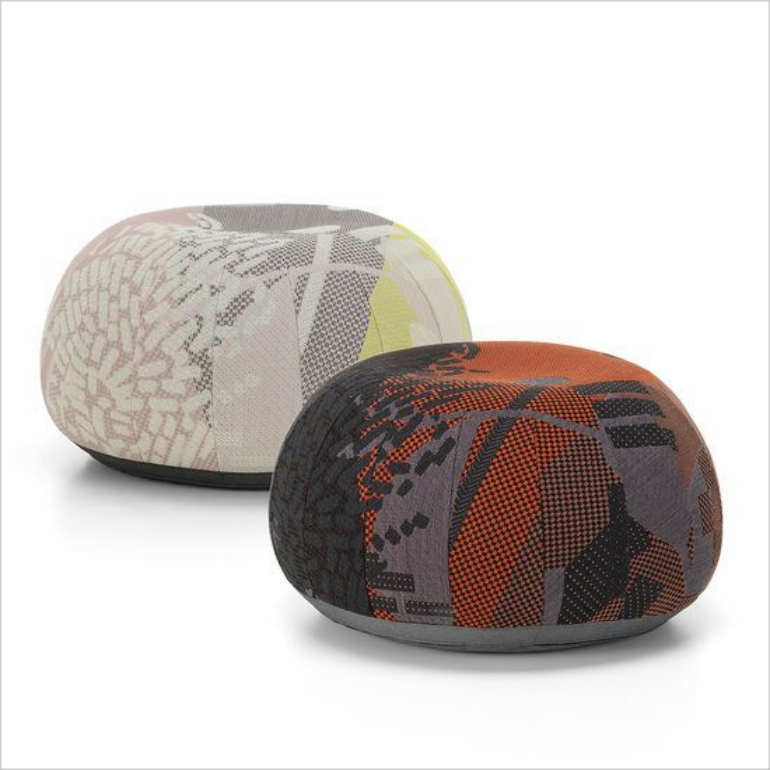 Bovist 是一款集裝飾性地枕、凳子和腳凳于一體的產(chǎn)品??椢镎植捎脧?fù)雜的提花編織圖案,呈現(xiàn)生動的圖案。
