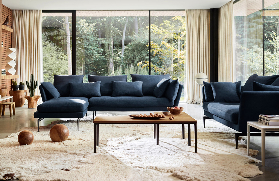 Suita 沙發(fā)系統(tǒng)將輕盈纖細(xì)的體積與工業(yè)和技術(shù)美學(xué)相結(jié)合。幾何形狀精確的車身和靠墊似乎漂浮在光滑的橋狀鋁制腿上,這可以被視為對世紀(jì)中葉美國設(shè)計的致敬。Suita 沙發(fā)系列包含范圍廣泛的組件。這些可以作為獨立元素使用,也可以自由組合,以適應(yīng)各種室內(nèi)環(huán)境和陳設(shè)需求。座墊和靠墊有硬質(zhì)或軟質(zhì)兩種版本可供選擇,并且可以選擇簇絨。