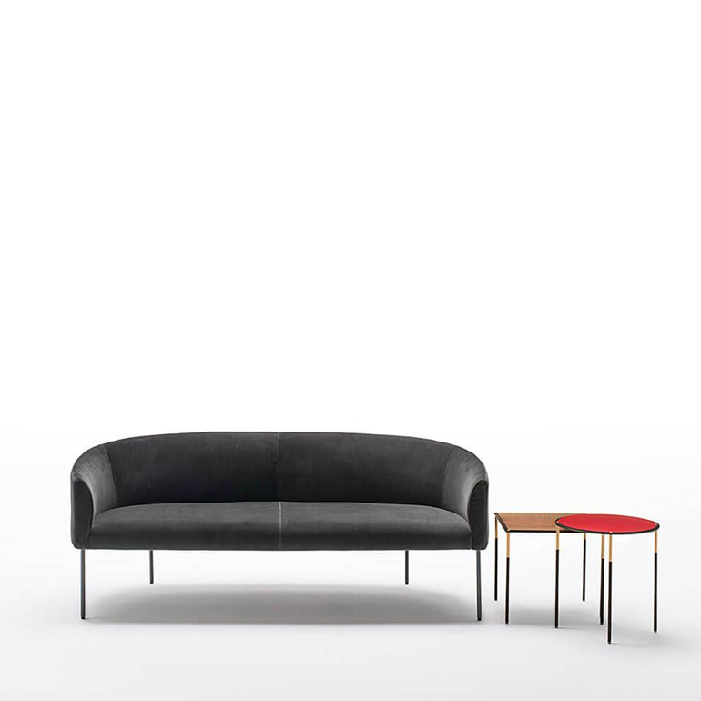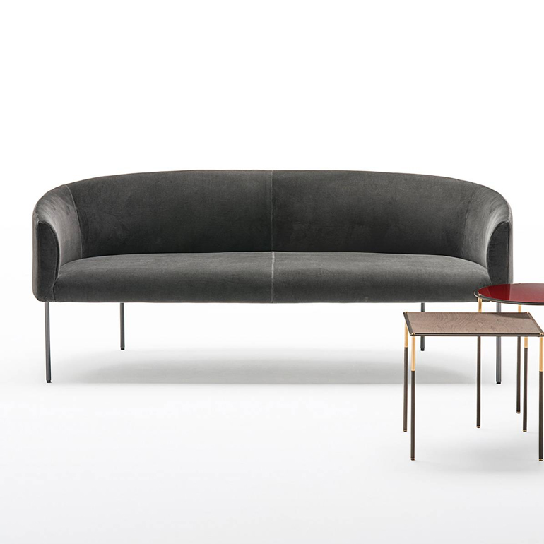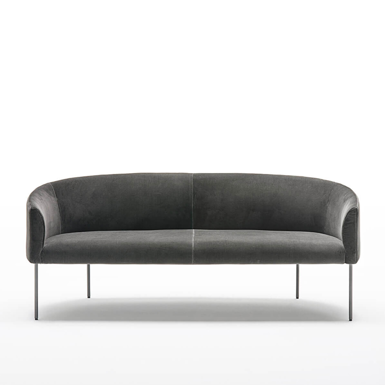 對于這兩種材料,均采用100%聚醚熱粘合在聚酰胺天鵝絨背襯上,并采用針刺、樹脂化、非織造聚酯纖維粘合在聚酰胺天鵝絨背襯上。鋼腳?15mm,涂有青銅灰色環(huán)氧粉末涂料,用襯套和可調(diào)節(jié)的黑色PVC頭擰到靠背框架上??椢锘蚱じ飪?nèi)飾,可通過拉鏈和尼龍搭扣完全拆卸。座椅深度:扶手椅60cm;沙發(fā)66厘米。