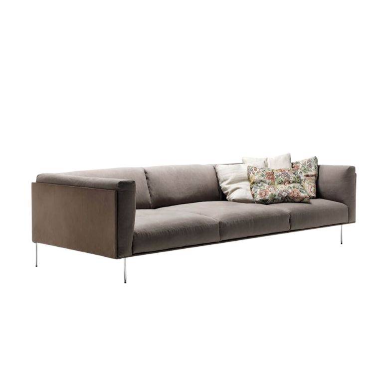 用雙層白楊木和松木的整體框架固定沙發(fā)。鋼制座椅底盤,帶有交叉編織、涂層橡膠彈性帶支撐。不同密度聚氨酯泡沫的外殼填充物。覆蓋在針刺、樹脂化、無紡布聚酯纖維上,粘合在聚酰胺天鵝絨背襯上,100%聚醚熱粘合在聚酰胺天鵝絨背襯上。預(yù)先清洗和消毒的座椅、靠背和扶手靠墊鵝絨絨,縫合成單獨的隔間,帶有預(yù)成型聚氨酯泡沫插入物或聚氨酯泡沫,覆蓋有丙烯酸纖維層??勘澈妥鶋|,通過拉鏈連接在一起。鋼腳,緞面鎳飾面,由支架連接??椢锘蚱じ飪?nèi)飾。僅織物版可通過拉鏈和尼龍搭扣完全拆卸。皮革版總是帶有不可拆卸的內(nèi)飾。座椅深度:62厘米。
