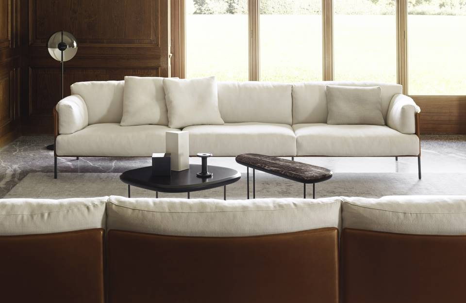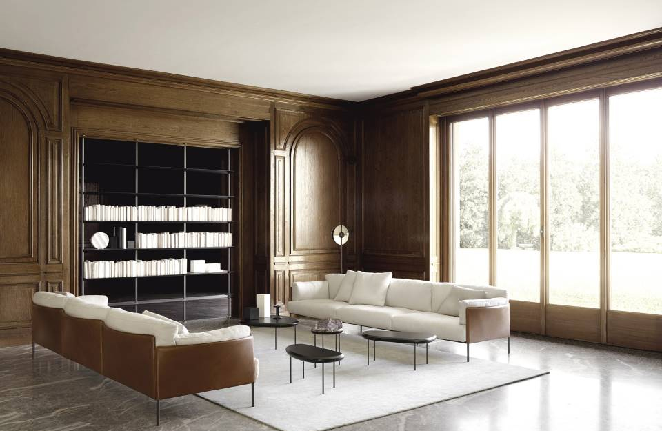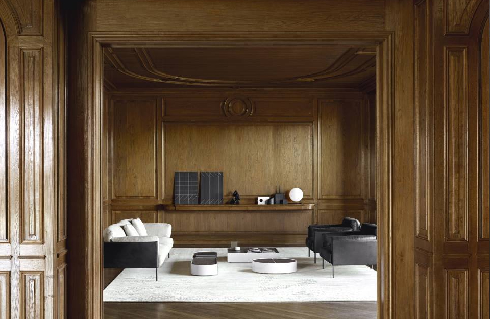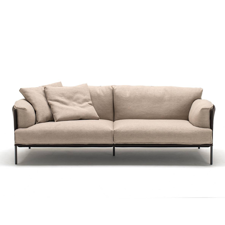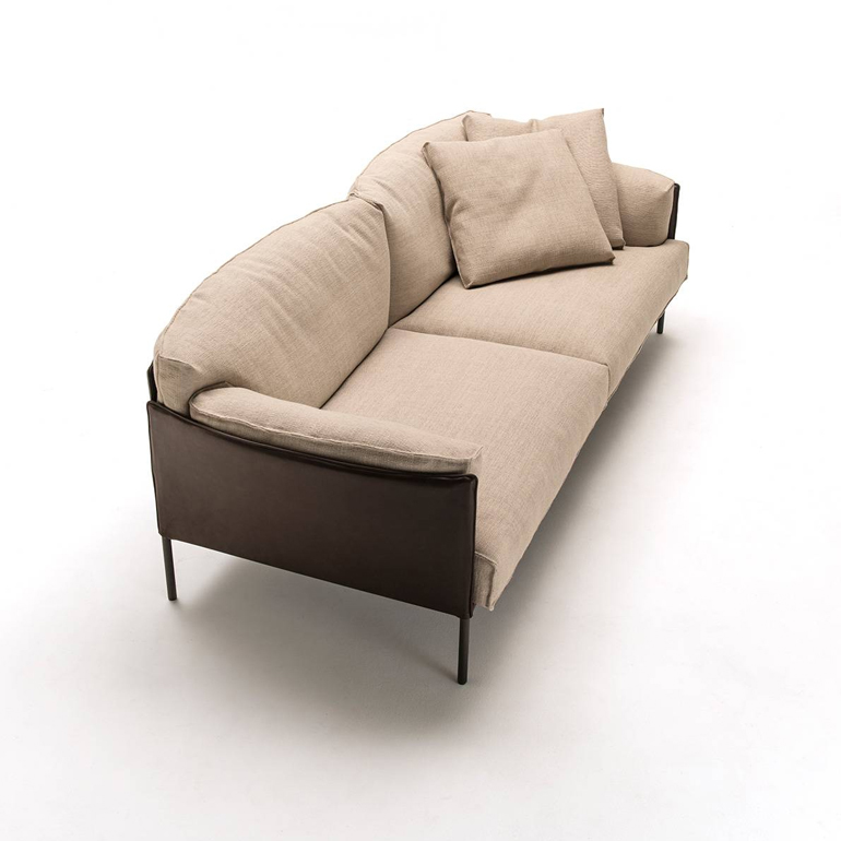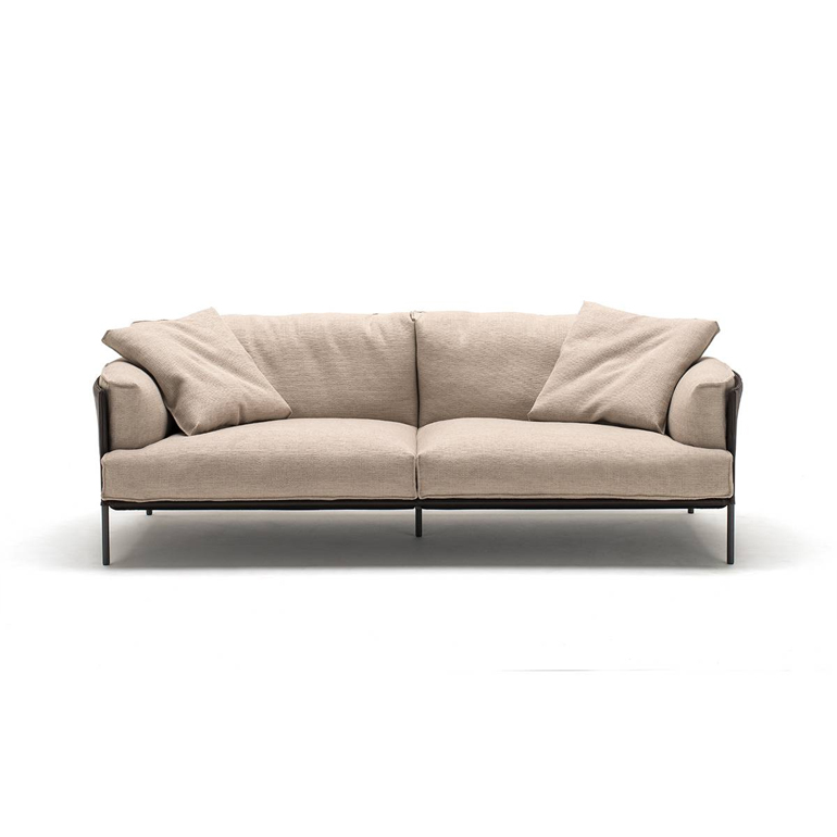 沙發(fā)和扶手椅,支撐結(jié)構(gòu)為涂漆管狀鋼,截面為60x30mm,座椅由涂有涂層的橡膠彈性帶和聚氨酯泡沫襯墊支撐??勘澈头鍪纸Y(jié)構(gòu)由管狀鋼制成,嵌入冷膨脹聚氨酯泡沫中,覆蓋在100%聚醚中,熱粘合在聚酰胺天鵝絨背襯上,用螺釘固定在支撐結(jié)構(gòu)上。座椅、扶手和靠背軟墊采用預(yù)先清洗和消毒的鵝絨制成,縫合在單獨(dú)的隔間中,帶有經(jīng)過(guò)處理的聚氨酯泡沫嵌入件。全長(zhǎng)座墊,帶靠墊、扶手墊,通過(guò)拉鏈連接在一起。鋼筋支腳?22mm,通過(guò)襯套擰到靠背結(jié)構(gòu)上,焊接在結(jié)構(gòu)和座墊支撐桿內(nèi),采用?20mm鋼管,通過(guò)螺釘墊片固定在底座上,涂有炮銅灰色環(huán)氧粉末涂層。地板支架由可調(diào)節(jié)的黑色PVC腳固定??椢锘蚱じ镏频淖鴫|和結(jié)構(gòu)內(nèi)飾;僅織物版可通過(guò)拉鏈和尼龍搭扣完全拆卸。座椅深度:64厘米。