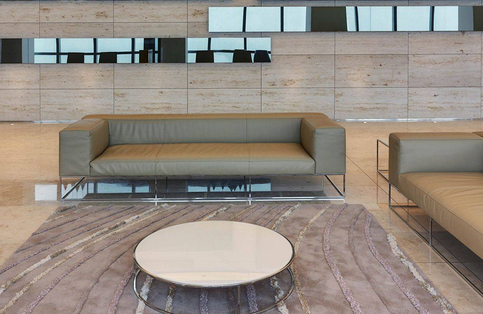 不同尺寸的元素,扶手和靠背結(jié)構(gòu)采用雙層白楊木和松木。涂漆鋼制座椅底盤,帶涂層橡膠彈性帶??蚣芴畛湮锊捎谜耻浨颐芏炔煌木郯滨ィ妙A(yù)先清洗和消毒的鵝絨墊覆蓋,縫合成單獨(dú)的隔間,或覆蓋丙烯酸纖維層。座墊采用不同密度的聚氨酯泡沫塑料和Visco-Soft制成,覆蓋有預(yù)清洗和消毒的墊子鵝絨絨,縫合成單獨(dú)的隔間,或覆蓋丙烯酸纖維層。座椅下面板采用100%聚酯纖維的熱粘合剛性填絮。AISI 304不銹鋼底座,啞光緞面,或鋼制漆,炮銅灰色或拋光色??椢锘蚱じ飪?nèi)飾,可通過拉鏈和尼龍搭扣完全拆卸??筛鶕?jù)要求提供絎縫座墊、不可拆卸真皮內(nèi)飾。座椅深度:66厘米。