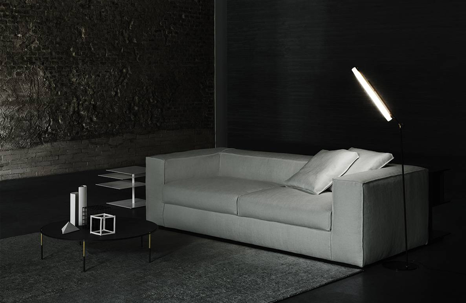 雙層白楊木和松木框架沙發(fā)床。填充不同密度的聚氨酯泡沫。覆蓋在針刺、樹脂化、無紡布聚酯纖維上,粘合在聚酰胺天鵝絨背襯上。座墊墊有不同密度的聚氨酯泡沫結(jié)構(gòu),覆蓋有丙烯酸纖維層。黑色漆鋼腳。