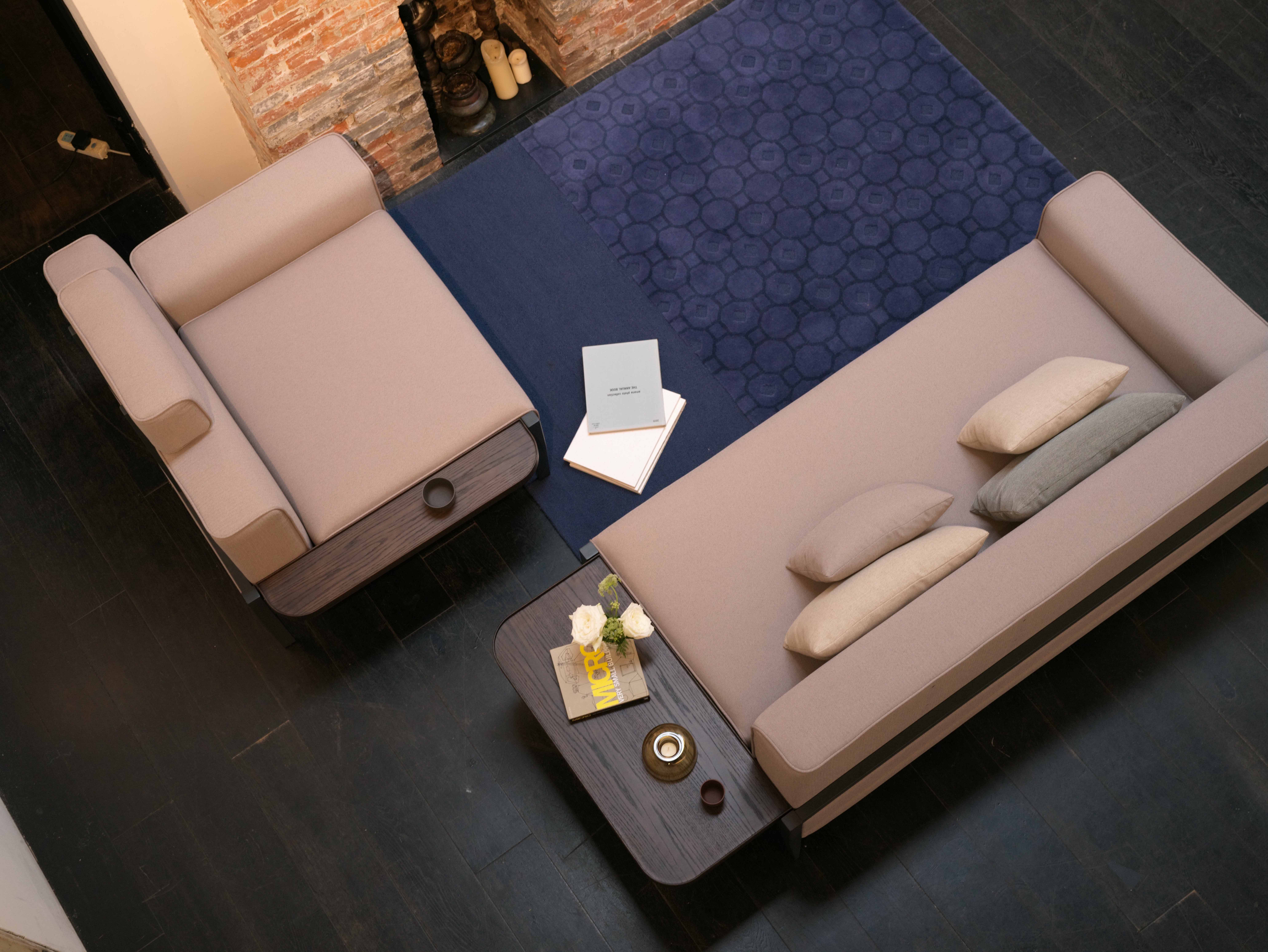 Float 系列有四個版本:一座、二座和三座沙發(fā),以及 L 形沙發(fā)。該系列采用模塊化設計,各個組件可組合成多種舒適的配置。Float Sofa 系統(tǒng)可以通過一系列配件進一步定制,包括后座、頭枕和一系列枕頭,這些枕頭可以排列成不同的布局,從而賦予沙發(fā)不同的外觀和功能。Float 還提供可選的內(nèi)置木質(zhì)邊桌,有兩種尺寸,這是 De Lucchi 認為與家居和手工建筑理念密不可分的祖?zhèn)髟亍?