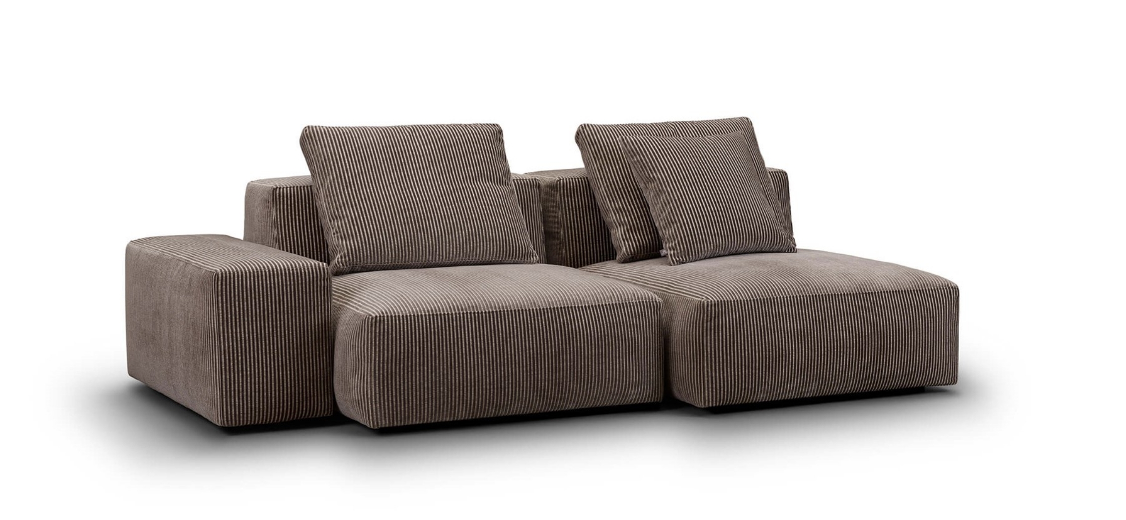 扶手、靠背和座椅可以像漂亮的積木一樣組合在一起。并排、僅一側(cè)或背靠背,將沙發(fā)變成一個(gè)華麗的雕塑,供四面八方欣賞和欣賞。