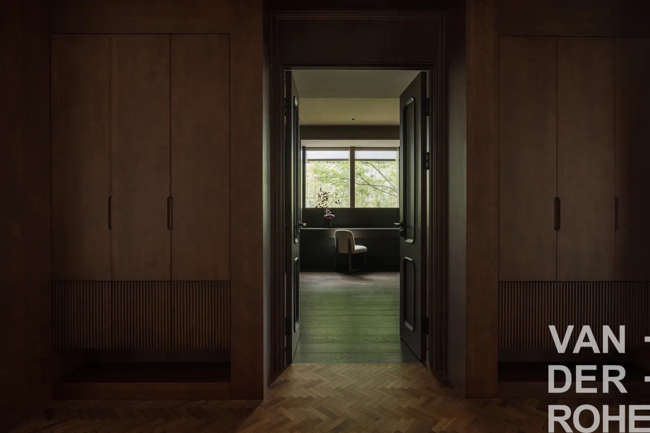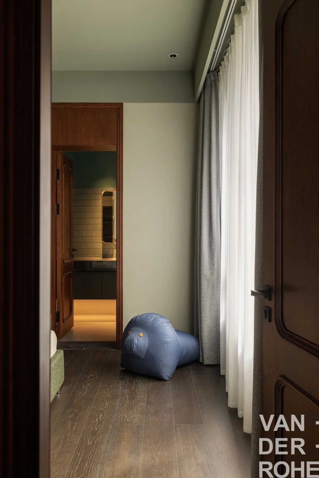 主臥空間像一捧溫潤的舊陶器。白色紗簾將陽光篩成細碎的金箔,這里沒有繁復的裝飾,只有木紋在晨昏交替中緩慢生長,衣帽間的光影隨著季節(jié)變換角度。