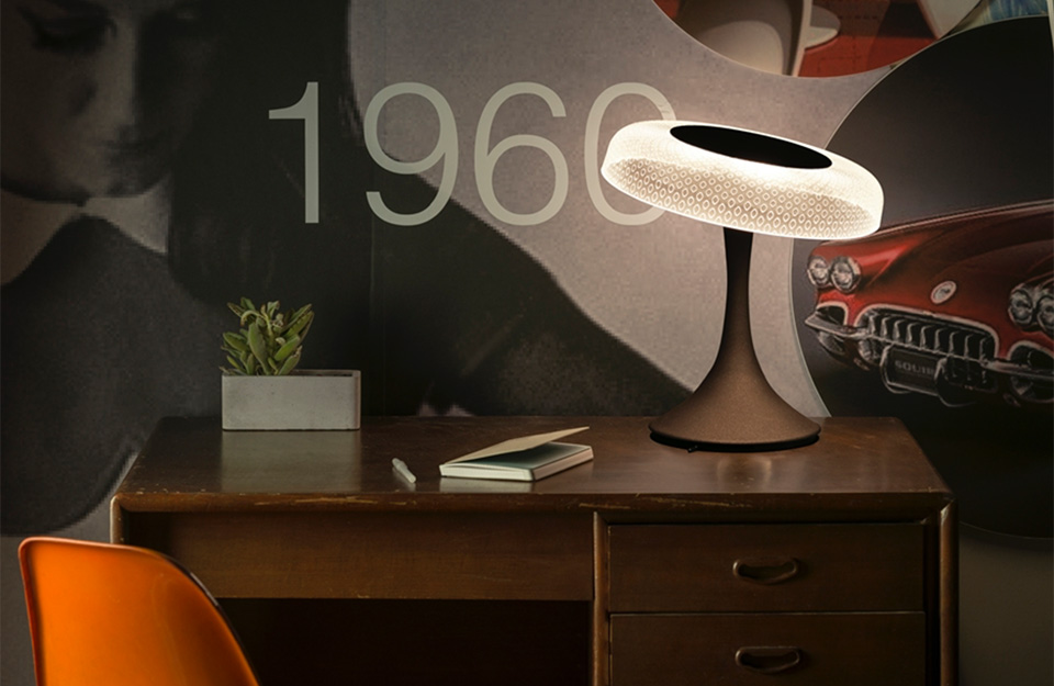 復(fù)古風(fēng)潮帶領(lǐng)著我們回溯到1960年代尋找設(shè)計靈感,典藏以1960年代被大量使用的渾圓幾何為設(shè)計元素,蘑菇樣式的發(fā)光弧形光板上層層堆疊的圓潤菱格光紋搭配XcellentDesign特有的微曲鏡,光在燈板上傳遞,于朦朧質(zhì)感中透出靈動的晶瑩剔透。雙向式轉(zhuǎn)軸,調(diào)整光照方向,時而優(yōu)雅時而俏皮,一種充滿活力的經(jīng)典時尚。