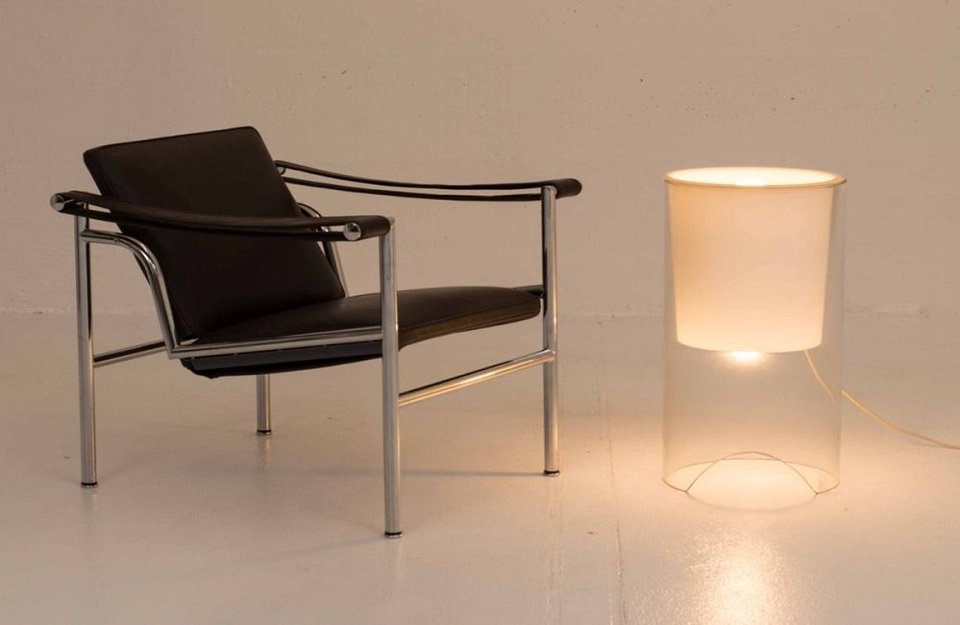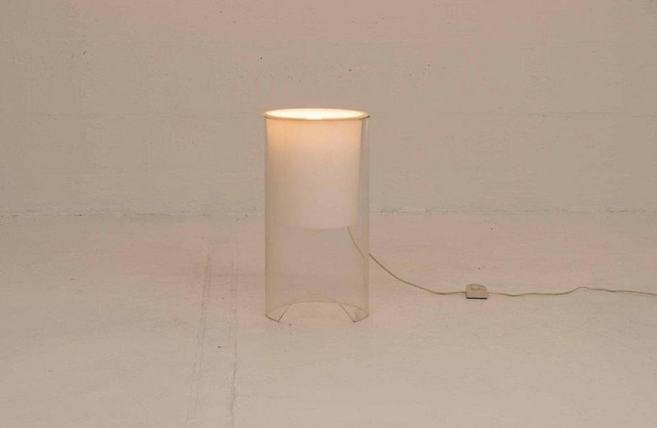 臺(tái)燈提供漫射光。透明玻璃圓柱形燈體。白色乳白玻璃擴(kuò)散器和反射器。
