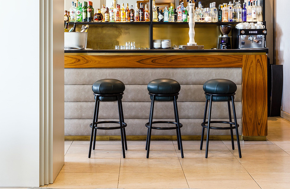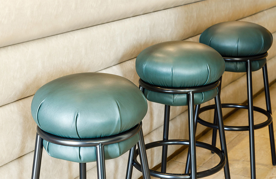 凳子與扶手椅完美互補(bǔ),采用相同的結(jié)構(gòu)和室內(nèi)裝潢顏色。它因其嵌入金屬結(jié)構(gòu)中的滲出墊而脫穎而出。