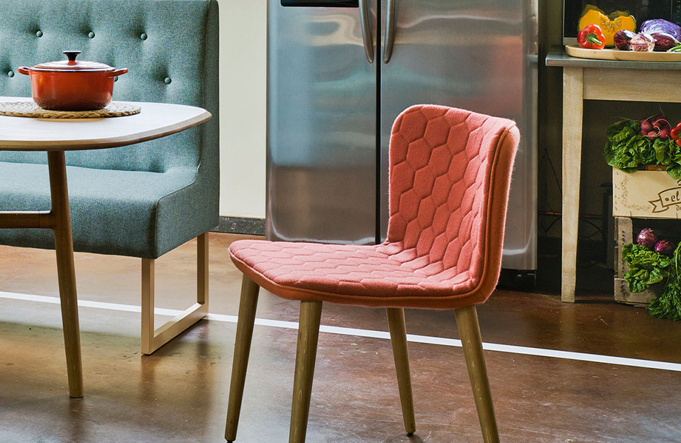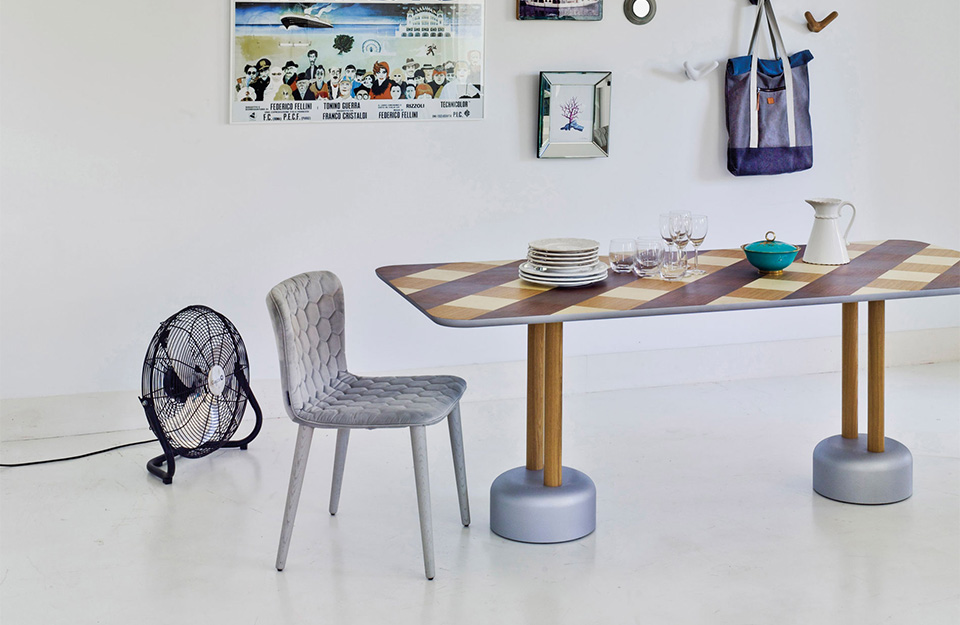 何塞·曼努埃爾·費雷羅將躺椅縮小到最低限度。由于注射了聚氨酯,背部的彎曲形狀支撐而靈活。除了茶葉系列的其余部分外,椅子還結(jié)合了六邊形絎縫和制作兩種雙色作品的可能性。結(jié)果:一把輕盈蓬松的餐椅,有纖細的橡木腿,或者一個有五只手臂的旋轉(zhuǎn)底座。
