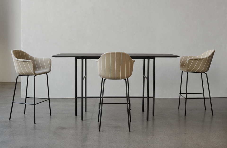 無論您是喜歡在臺面酒吧吃飯、工作和閑逛,還是更喜歡高頂?shù)母叨?,新的酒吧和柜臺版本都會邀請您直接停車。纖細而雕塑的幾何底座設(shè)計了舒適的腳橫桿,高度恰到好處,以延長舒適度并保持最佳狀態(tài)。底座有黑色粉末涂層鋼。MENU提供各種港口柜臺/酒吧椅變體,可加急送貨。
