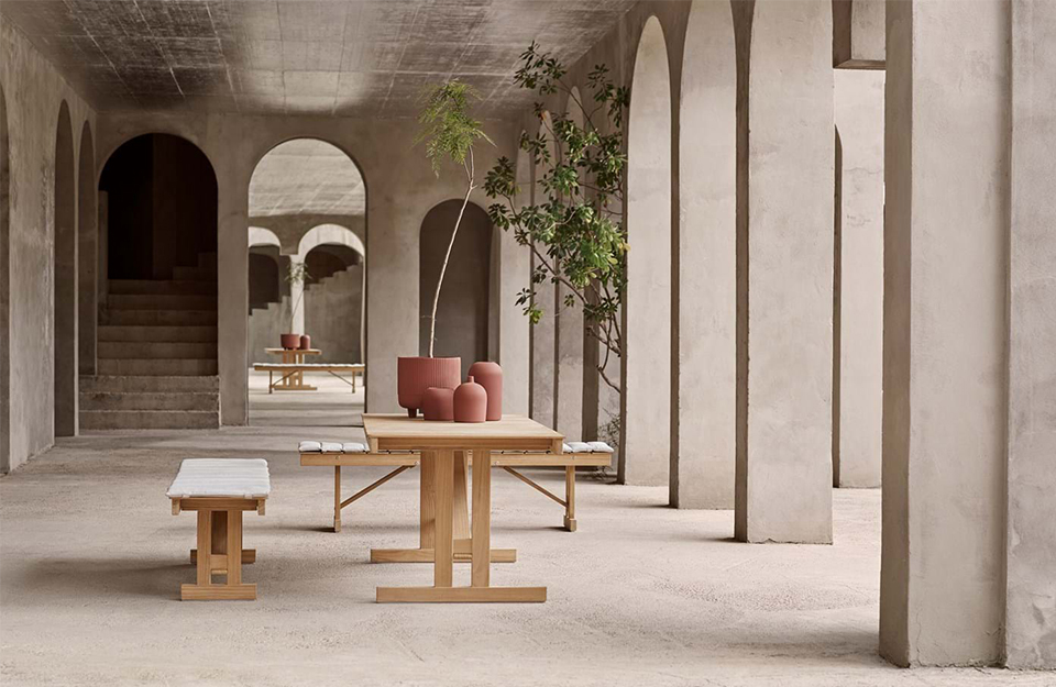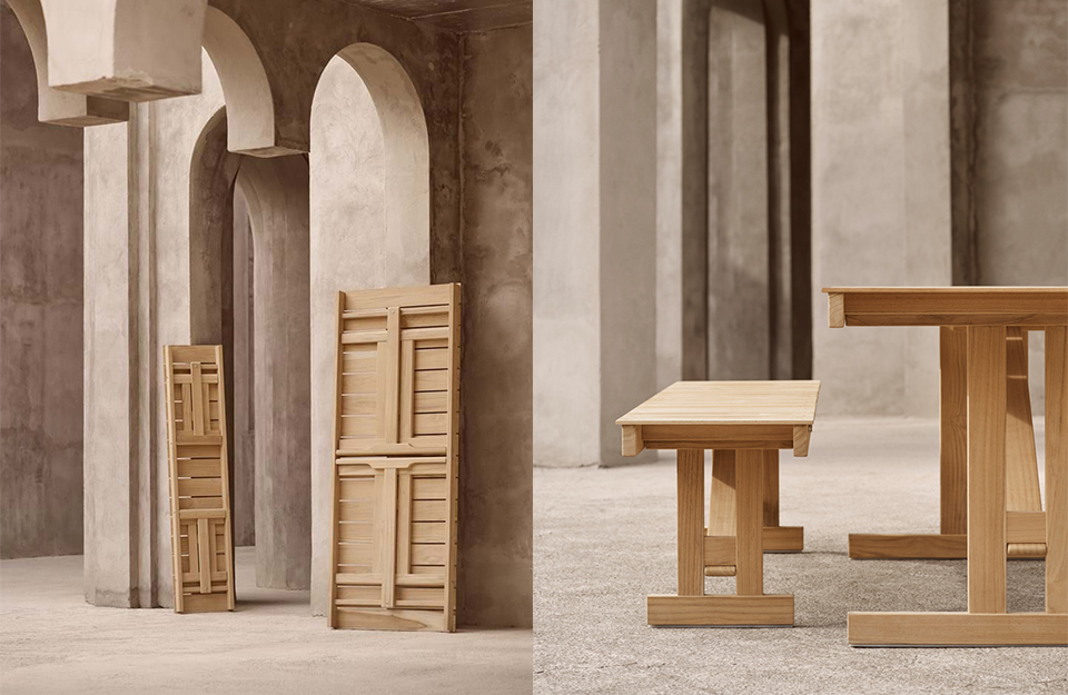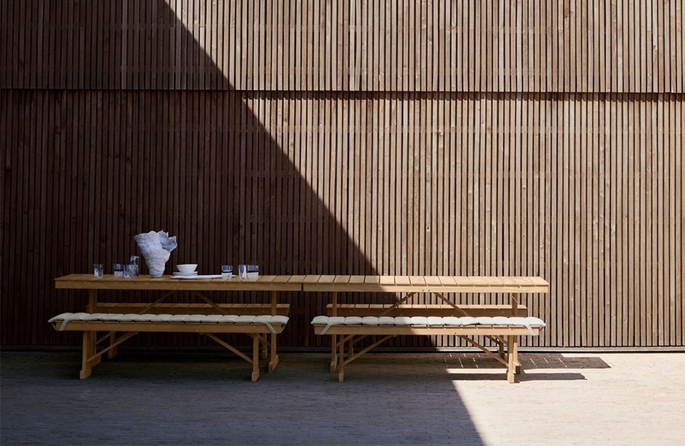 B?rge Mogensen 的功能主義方法在這位家具設(shè)計師于 1971 年創(chuàng)造的可折疊的桌子和長凳上體現(xiàn)得淋漓盡致。
