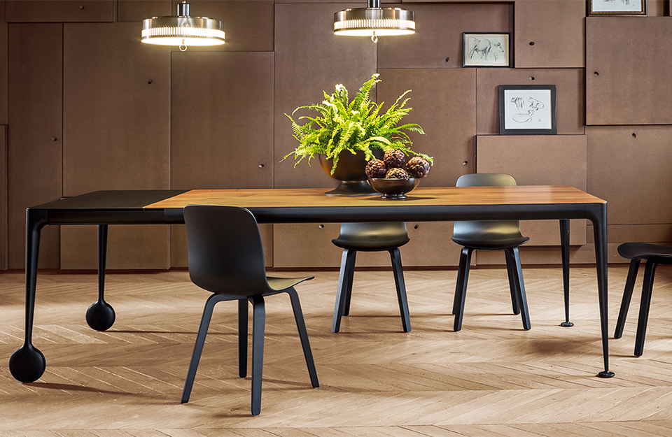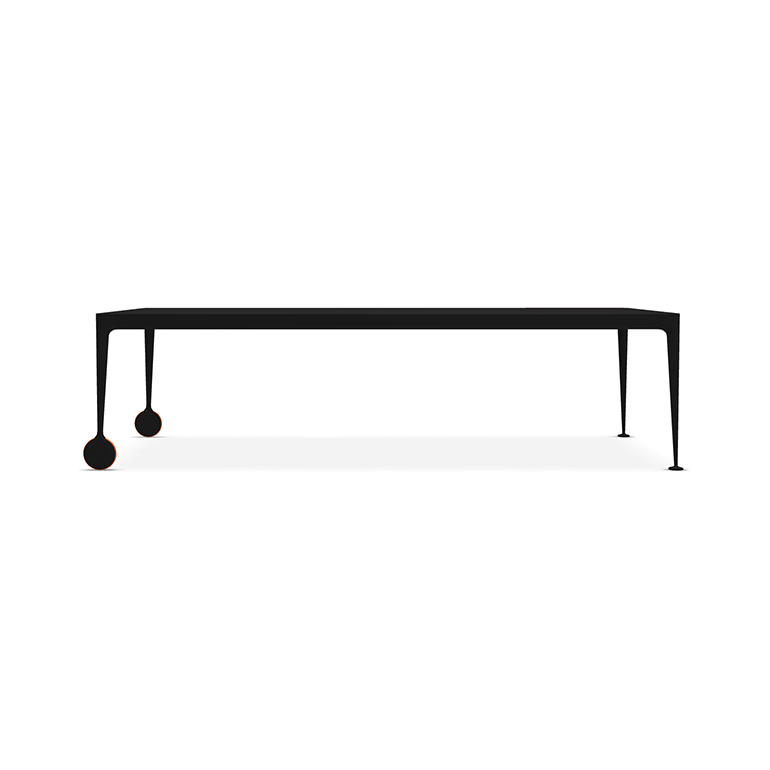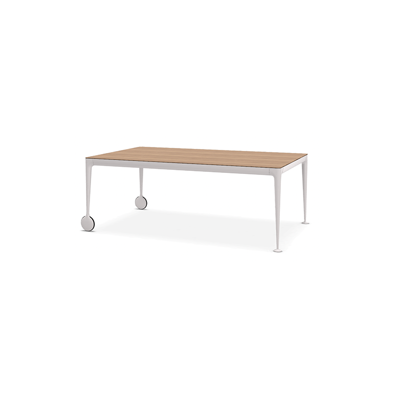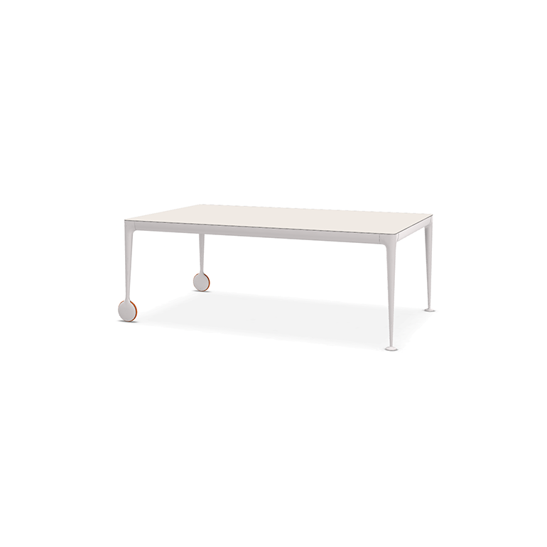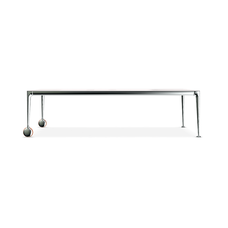 材料:壓鑄鋁腿,拋光或油漆。鋁制十字架,拋光或油漆。頂部為鋼化玻璃(光澤飾面)、酸蝕刻(啞光飾面)或美國核桃。橡膠車輪和腳。MDF層壓板涂層(啞光飾面)中可擴展版本的葉子。