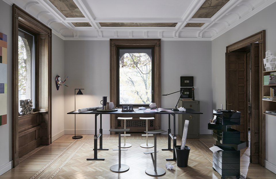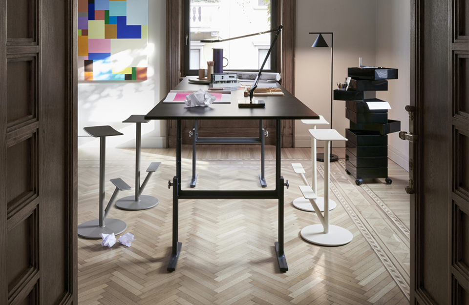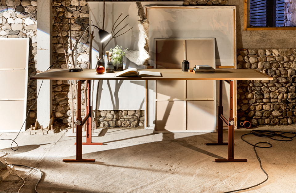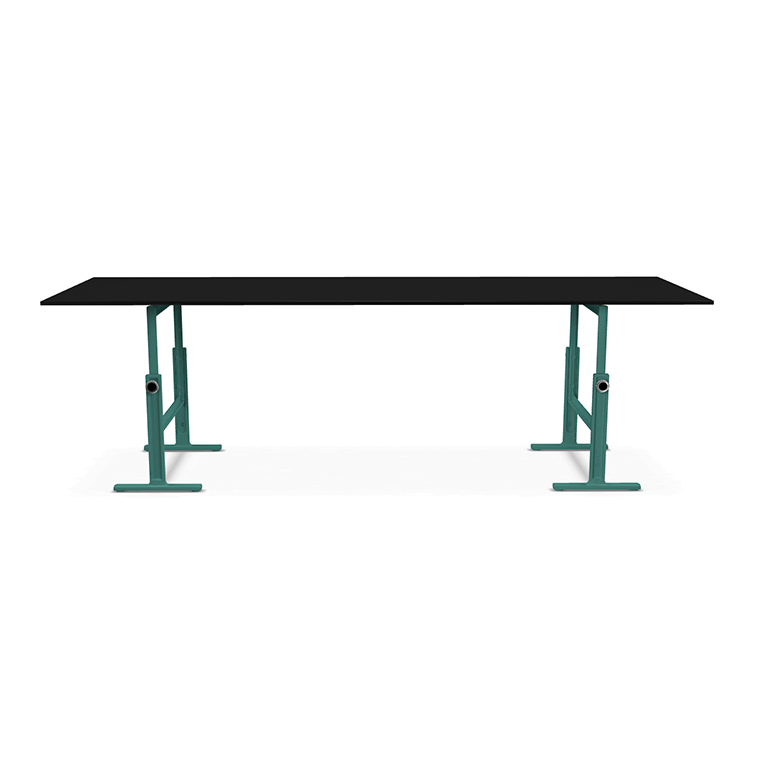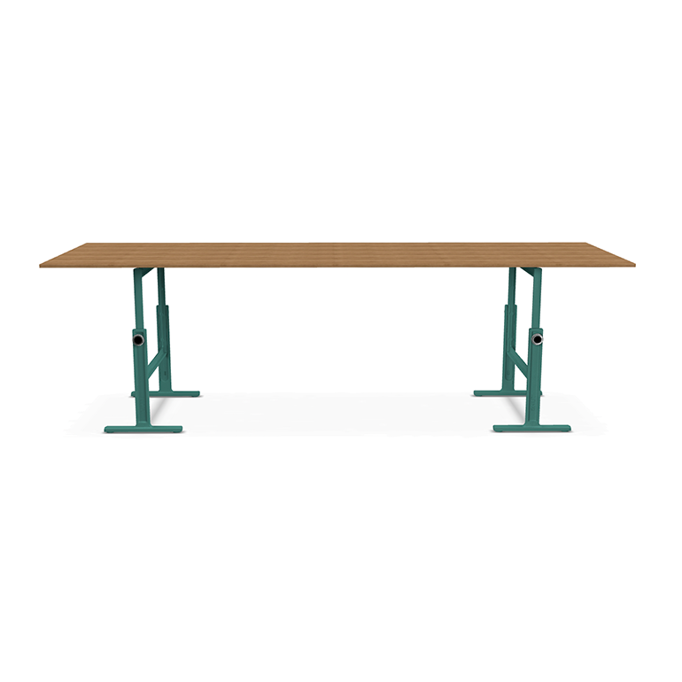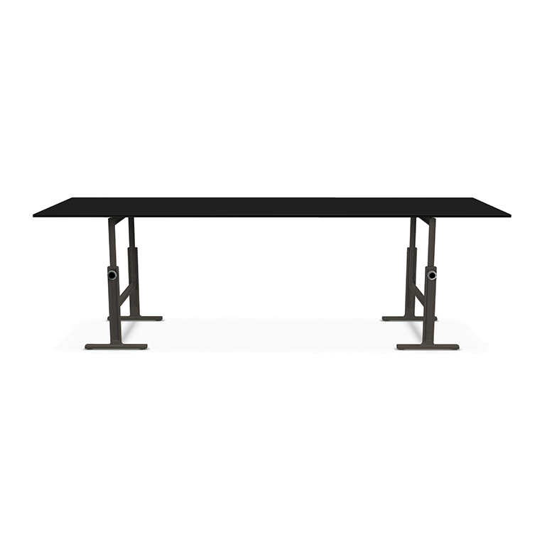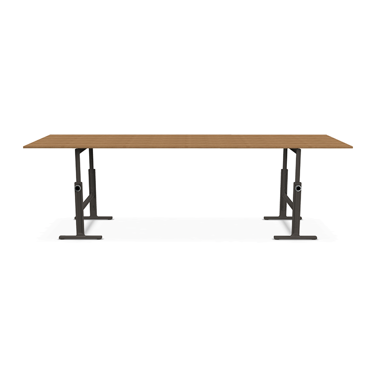 材料:一對(duì)鑄鐵支架,涂有聚酯粉末,高度可調(diào)。頂部為橡木或鋼板,電鍍鋅并涂上聚酯粉末。