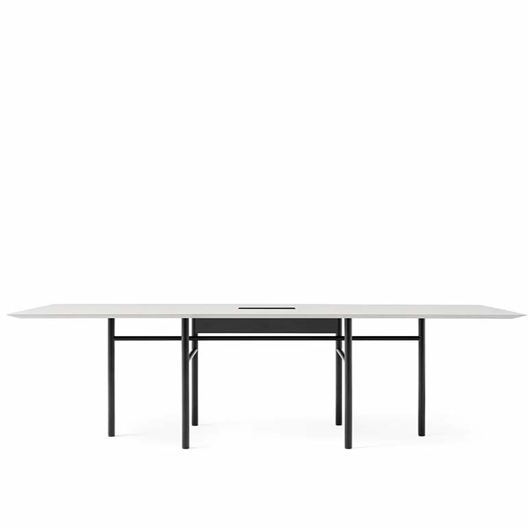 Snaregade系列提供一系列多功能桌子,適合任何環(huán)境和各種場(chǎng)合。該系列的最新成員是Snaregade會(huì)議桌,這是一種大型矩形設(shè)計(jì),采用一系列優(yōu)雅的材料制成,無論是在家中還是在辦公室,都考慮到了工作空間。它采用中央安裝孔制成,帶有相應(yīng)的蓋子和電纜橋架,可確保表面免受雜亂的電氣插頭和電線的影響。Snaregade會(huì)議桌還有一個(gè)可選的座椅滑軌 - 用于將Co椅子安裝在桌面下方。座椅滑軌不包括在內(nèi),必須單獨(dú)購買。