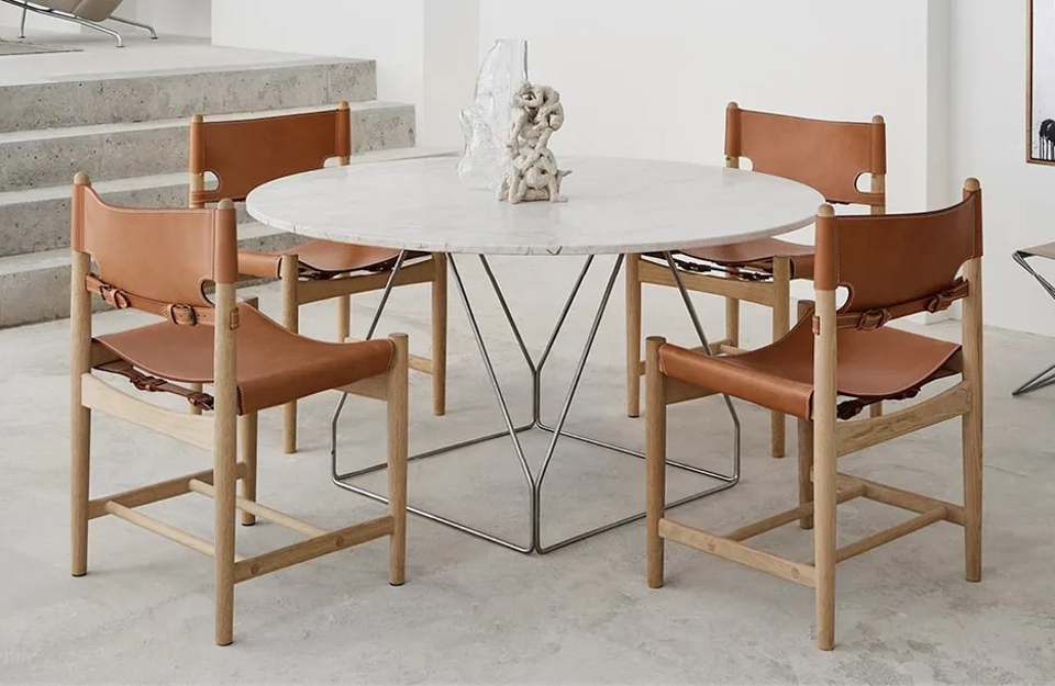 JG Table表達了設(shè)計師J?rgen Gammelgaard的愿望,即創(chuàng)造一個簡單、優(yōu)雅的設(shè)計,其支撐性結(jié)構(gòu)不會限制桌子周圍的座位。提供非凡的穩(wěn)定性,以及有趣的圖形美學(xué)。