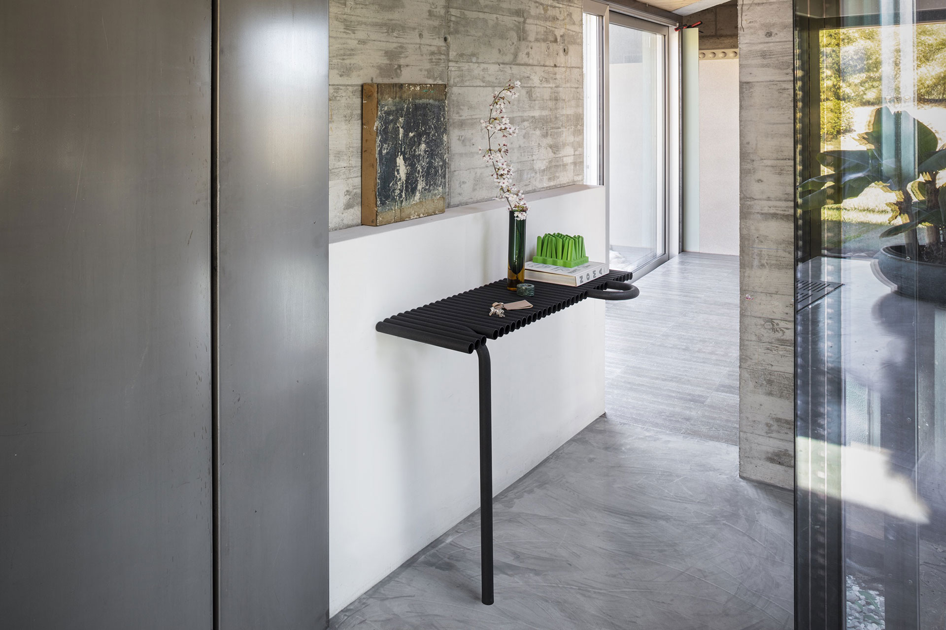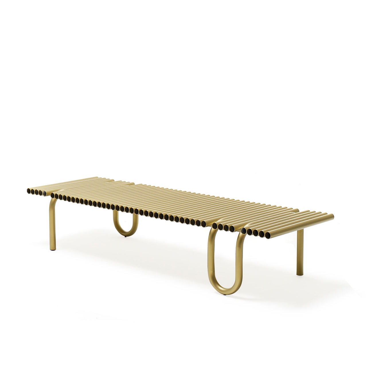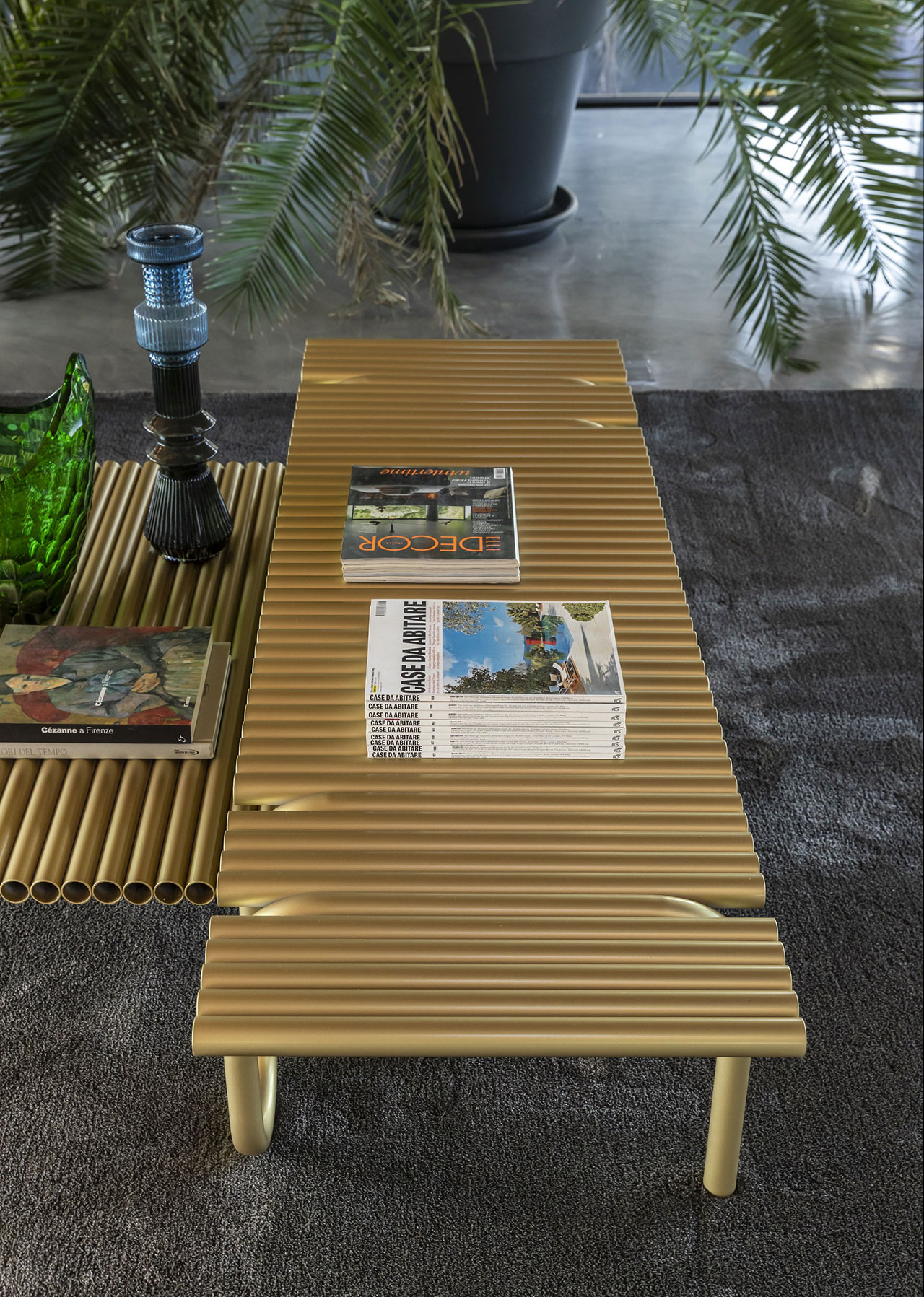 金屬咖啡桌和控制臺具有強烈的圖形設(shè)計和強烈的個性?;揪€條和已知的幾何形狀。通過金屬管的重復節(jié)奏創(chuàng)建的表面同時創(chuàng)造出輕盈和堅固的效果。與固定在墻上的操作臺一起,方形和長方形的桌子裝飾得優(yōu)雅。